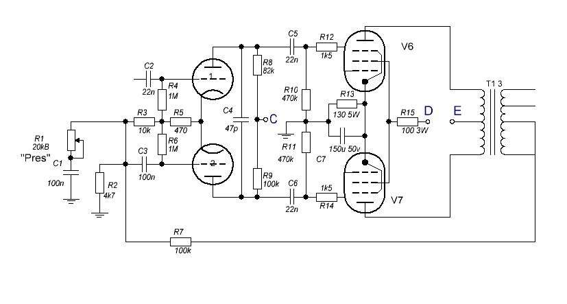 Да я уже видел эти схемы, наизусть уже знаю их ))) . Просто сначала сделал по схеме LocTora , а потом подумал, что лучше поставить все номиналы как в оригинале. В итоге я уже перепаял сеточные резисторы с 1.5 к на 5.6 к ( R12 , R14 по моей схеме) , а R3 в фазике с 10к на 47 к. Кстати, вот схема , из-за которой я решил поменять номиналы резисторов.