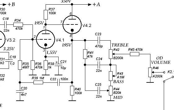 ... и добавил:Схему перерисовывал с другой своей, поэтому кое-где забыл убрать точки в местах соединения. Собранный преамп один в один повторяет схему JCM 800, перепроверял несколько раз. Поэтому и нахожусь в ступоре...