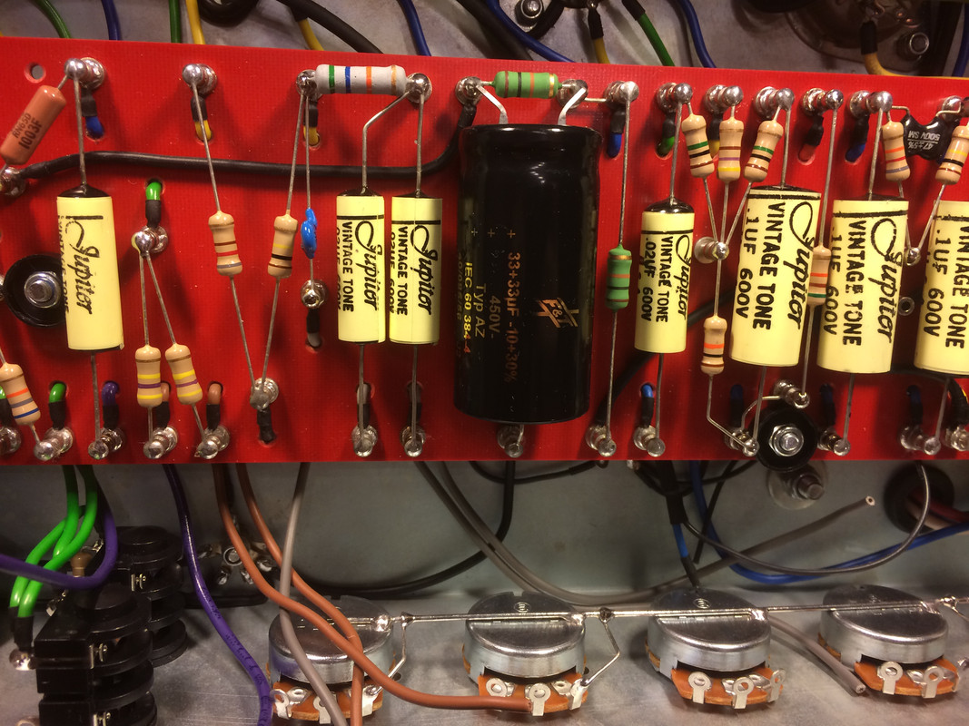 Что касается емкостей фильтра, существуют версии оригинала, где эти конденсаторы закреплены на боковых стенках в подвале шасси. Как минимум не придется сверлиться большим дивметром в 1,5мм стали.