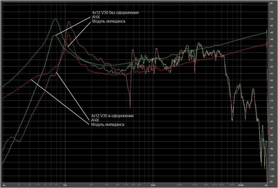 Файл "4x12 naked + boxed in 4x12" - снимал АЧХ и модуль импеданса 4х12 без оформления и в закрытом ящике.