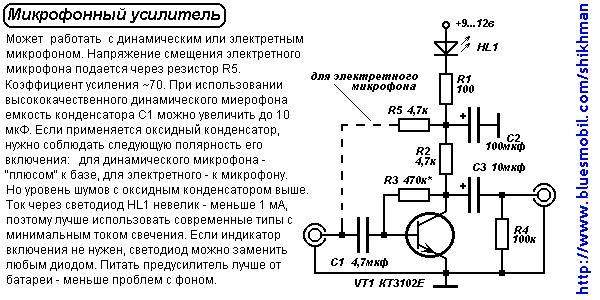 Откуда эта схема уже не вспомню. Давным-давно выдрал откуда-то, и только в прошлом месяце решил таки спаять. Если бы я знал, что всё равно понадобится батарейка, то наверное поискал бы другую схему. Эта мне показалась тихой. Хотел вообще что-то, что с крутилками... ну на процесс как-то чтобы влиять. Уровень, тембр.... Но по микрофонным преампам как-то всё на две категории разделено: или вот такой вот примитив, или что-то архинавороченное на лампах для студийной записи. Насчёт шумов.. да вроде нет шумов. Но я втыкаю в линейный вход ноутбука, а в нём такая звуковуха... короче не до хайфая.