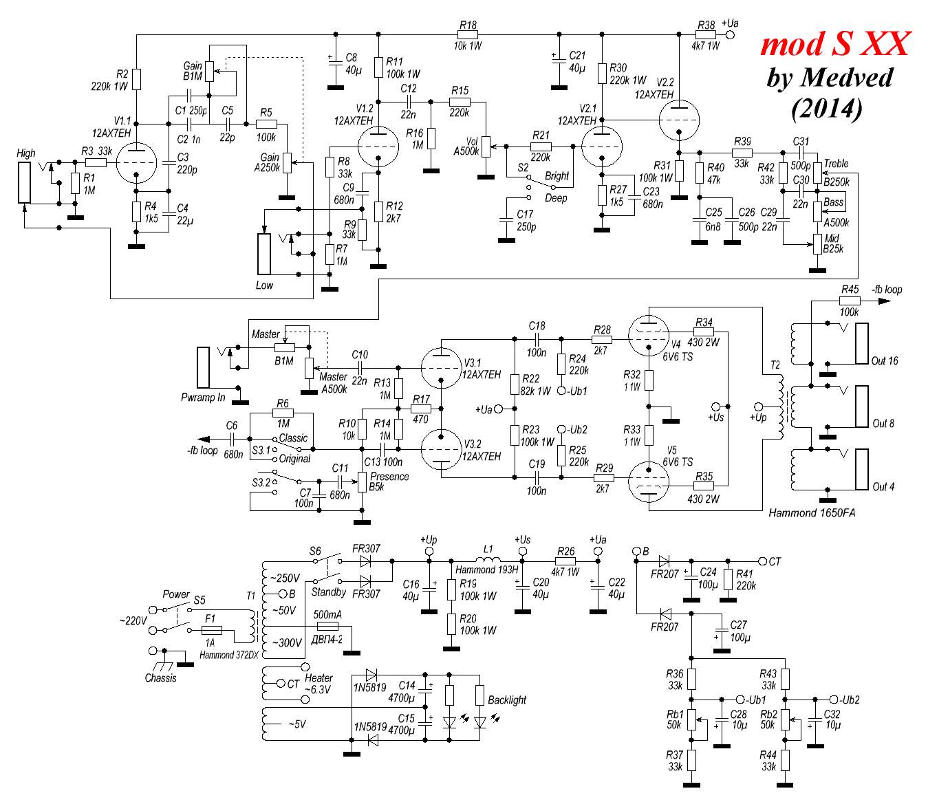 Отмакетил третий каскад на 110к с 910/1к/1к2/1к5: по сравнению с 220/1,5 значительно теплее, гармоники перегруза смещаются ниже, а по низам наоборот - поднимаются выше. Можно сказать, что 220/1,5 более жирный и колючий, а 110/910 менее модерновый, но никак не рваный. При этом для себя однозначно выбрал вариант с 110/910 - быстрый мьют кардинально читаемее, а низ лучше дружит с моим кабинетом. Субъективно уровень гейна в обоих случаях меняется незначительно. Как доберусь до магазина, сравню для себя с классикой 100/820.
