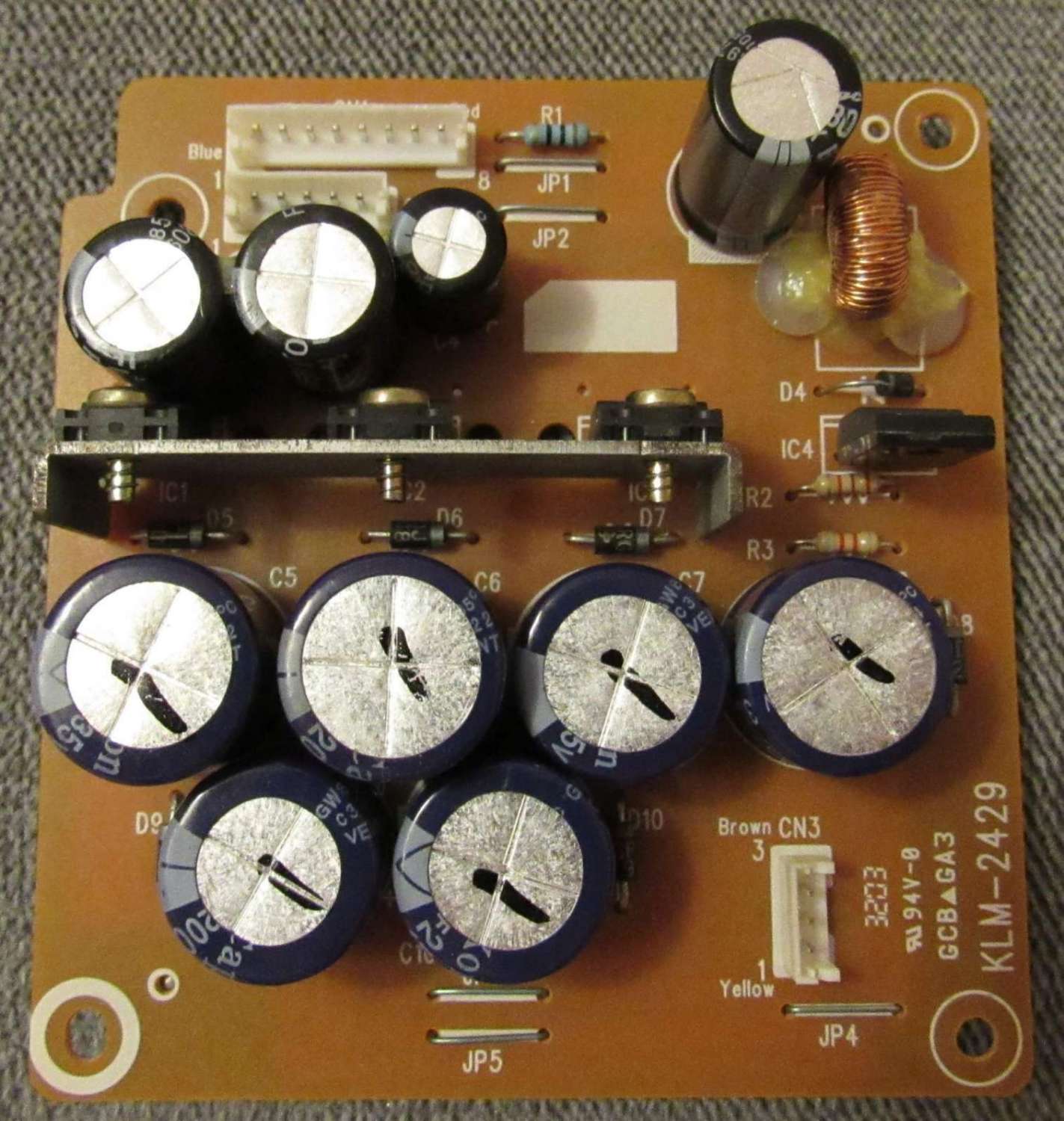 По поводу конденсатора после импульсника забыл сказать - там не всё так просто. Частота работы этого стаба(5в) около 100кгц(по пдф-ке на микруху), поэтому кондёр должен быть специальный, класса lowesr, такие кондёры используются в питании процессоров на материнках и видеокартах. Я ставил что-то типа CapXon серии LZ либо JAMICON серии WL(это для примера, не знаю, что есть в Ваших краях). Кстати, такие кондёры часто ставят на выход импульсных БП, где я их и менял, так что если есть донор в виде БП, то можно попробовать дёрнуть оттуда, если в продаже нет.