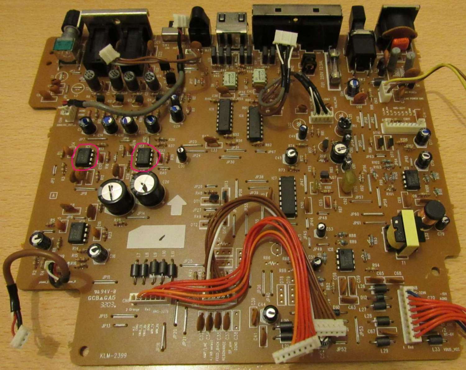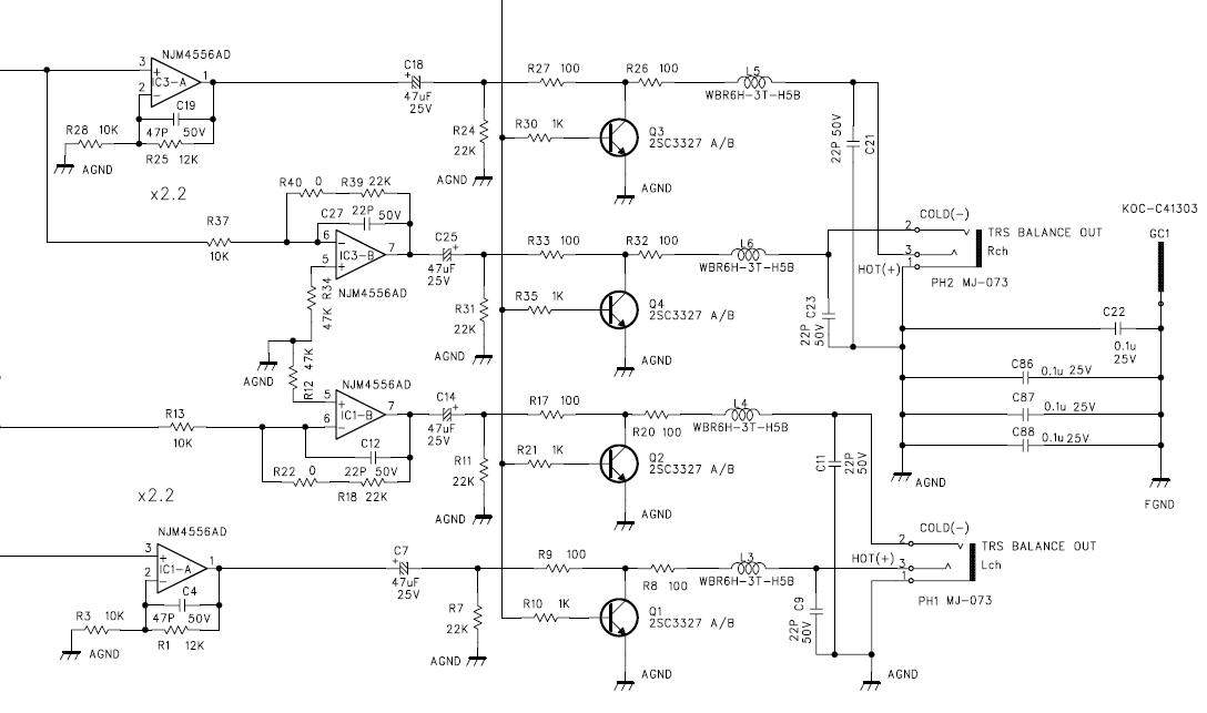 Кстати, если верить схеме, то ic3 и ic4 не выходные ОУ, а входные, 3-й стоит на входе ацп 1-го кодека(собственно гитара в начале оцифровывается им), а 4-й - на входе 2-го кодека, очевидно оцифровывает выход с ламповой части. Из этого следует, что скорее всего проблема была вокруг ic3, а может ещё проявится, не мешало бы вокруг всё пропаять на всякий.