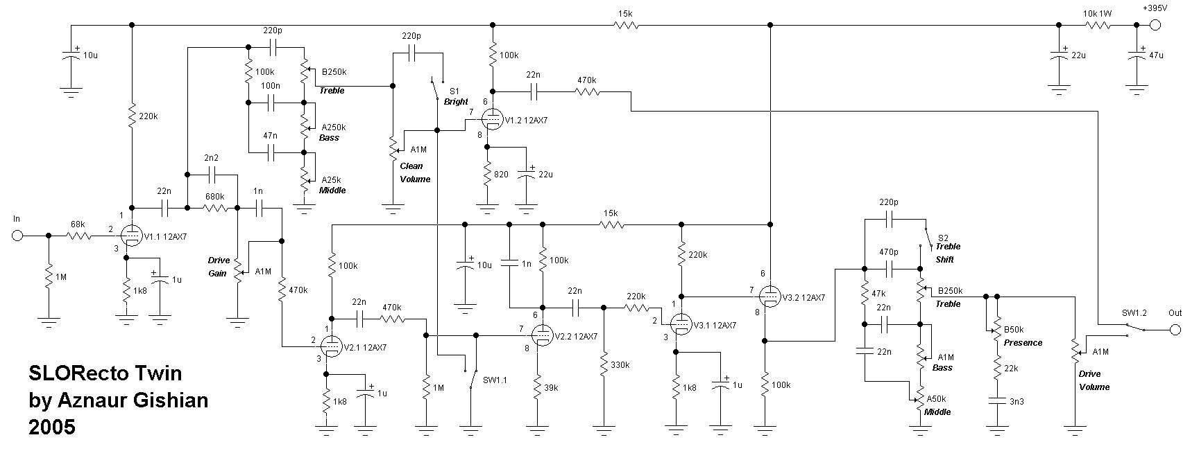 Вот дорисовал полностью печатку под Ректу +чистый по схеме СРТ-1 , подписал все детали . Питание реле на плате предусмотрено от обмотки смещения, с делителем напряжения, одним диодом и стабилизатором 7824 . Плата темброблока грязного канала будет на проводах на шасси . Темброблок чистого выкинул из схемы, будет просто рс-фильтр. Прошу проверить на правильность разведения печатки , особенно важно мнение автора- Азнаура. Думаю наверное надо ещё сделать полигоны земли экранирующие возле чувствительных сигнальных цепей ?