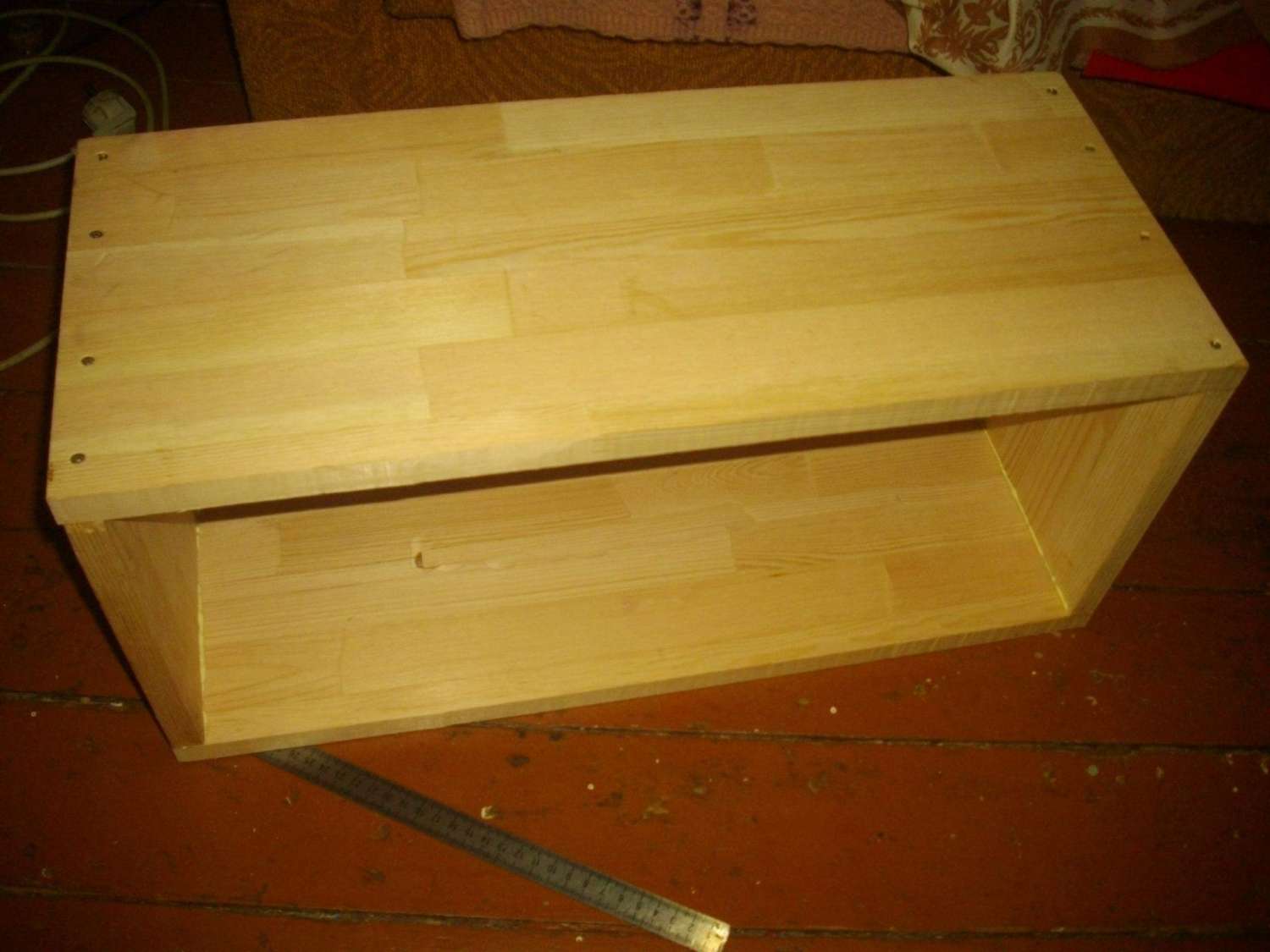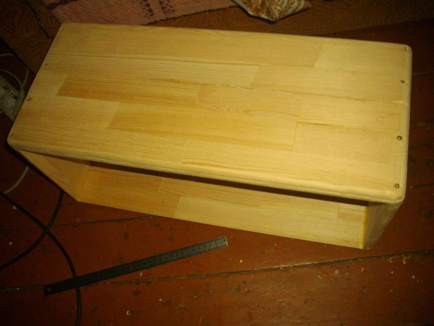 но тем не менее. Из заготовленного загодя мебельного щита (две штуки - 18 х 300 х 800) напилил из каждого - по одному основанию и по одной боковинке.