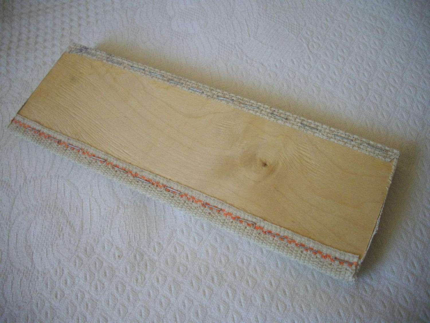 очень жесткая, приятная на вид, имеющая красивую текстуру и очень хорошо подходящая для наших "кабинетных" дел. Этой канвой обтянул переднюю стеночку, используя степлер и пару капель "Титана".