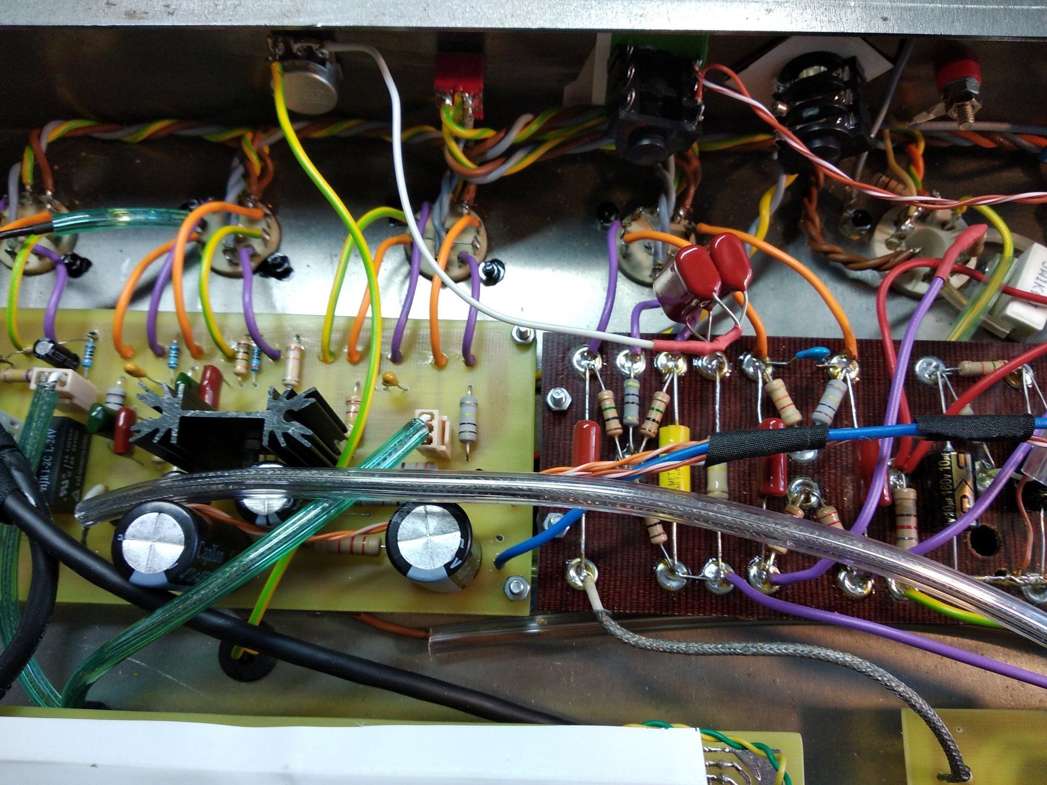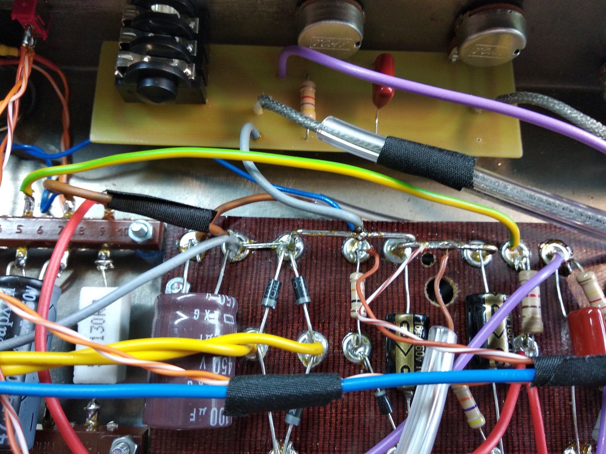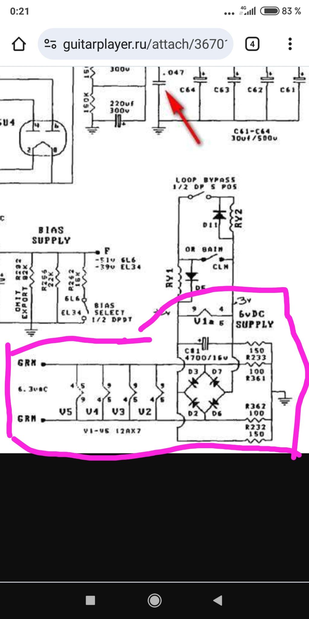 Вобщем перепаял землю в фазике на плате презенса как положено по совету alkuz , коротким проводом от резистора сразу на шину земляную , и отрезал землю по экрану со стороны входа в мощник с одной стороны. Теперь по фен шую, петель земляных в оконечнике нет. Потом поменял 100 нФ в цепи оос на 5 мкФ , и ещё добавил регулятор переменник Depth на 100 кОм в ООС . Стало намного лучше, звук вернулся как был раньше, мощный и сочный без зудосрача . Напряжения все те же, на анодах фазика 230 и 220 В. Токи покоя одинаковые по 35 мА.