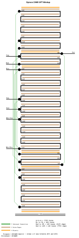 Секционирование в общем - 1/4 первички, кусок для 16ом вторички(36витков), 0,5первички, кусок для 8ом вторички+4ом вторичка(26+62витка), 1/4первички, ещё одна параллельная вторичка 4 ом тонким проводом(62витка).