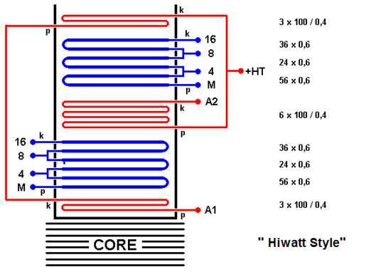 Назло американцам намотал по этим моточным данным по упрощенной раскладке (тоже фендеровской,но конца 60-х) свой трансформатор на совейском железе и совейским ПЭЛом 50-х годов. Звучит не хуже. Музыканты говорят,что слаще и гораздо яснее. Кстати, приходилось (ради проф.любопытства) исследовать около десятка винтажных трансов различных усилов,у всех железо 0,5мм. Да,забыл отметить, что набор собирается (на фендер-трансах) по два ламината. И еще полезно знать, что 50-ваттные трансы фендер рассчитывал Lперв.-9,5Гн(ориентировочно), а маршалл-6,5Гн. По крайней мере я в расчетах ориентируюсь на эти данные. Низов все равно очень много,приходится резать в схеме кондерами.
