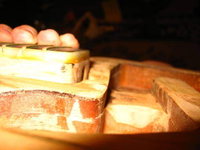 Снял весь лак, начал шлифовать для покраски, перо грифа, и некоторые места на деке надо шпаклевкой чуть, а так работа кипииит! только вот ято делать с панелью, из чего ее можно сделать?