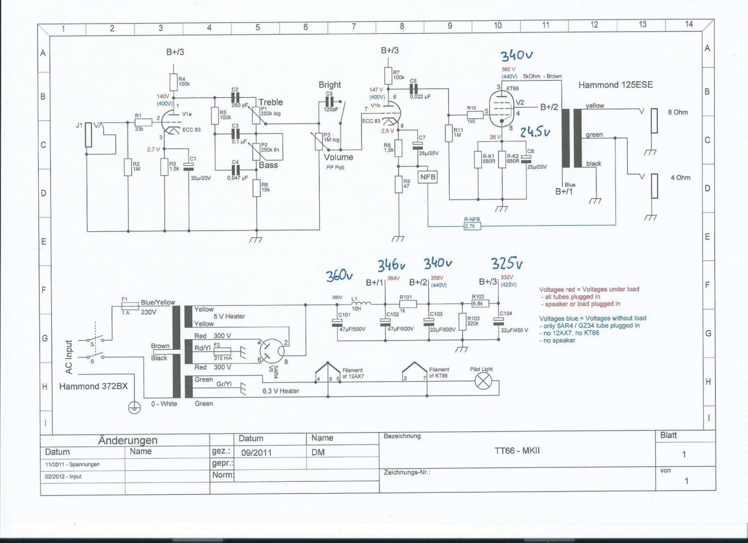 Такой вопрос : на схеме тт , на аноде КТ66 - 360вольт , а на второй решётке 358. На моих замерах 340 вольт что на аноде, что на второй решётке , не должна ли вторая решётка быть чуть ниже по напряжению по отношению к аноду? и если да то на сколько вольт?