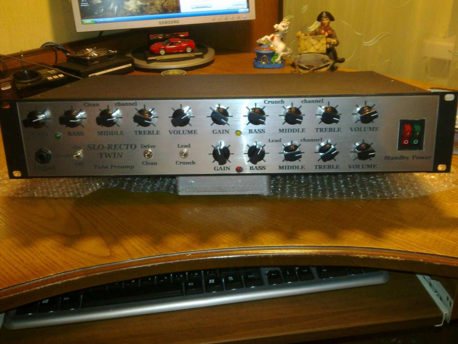 Короче суть в следующем - рисунок панели, надписи и прочие декоративные элементы печатались на струйном принтере на обычной бумаге (использование струйного принтера принципиально по некоторым моментам), лучше на бумаге рассчитанной на высокое разрешение печати. Далее это все вырезалось в размер и прорезались отверстия для дисплея (если таковой нужен). Затем это все закатывалсь в ламинат с мелкозернистой структурой. Глянцевый выглядит поганенько, а вот матовый придает изделию практически фирменный вид. К слову существуют специальные ламинаты с заранее нанесенной клеевой основой. Но думаю такой ламинат будет сложновато найти. По этому зактывается все в обычный ламинат, потом берется безосновный двухсторонний скотч, так называемый "ковровый", и накатывается на заднюю поверхность изделия. Далее все это просто приклеивается на жесткую основу панели прибора и все.