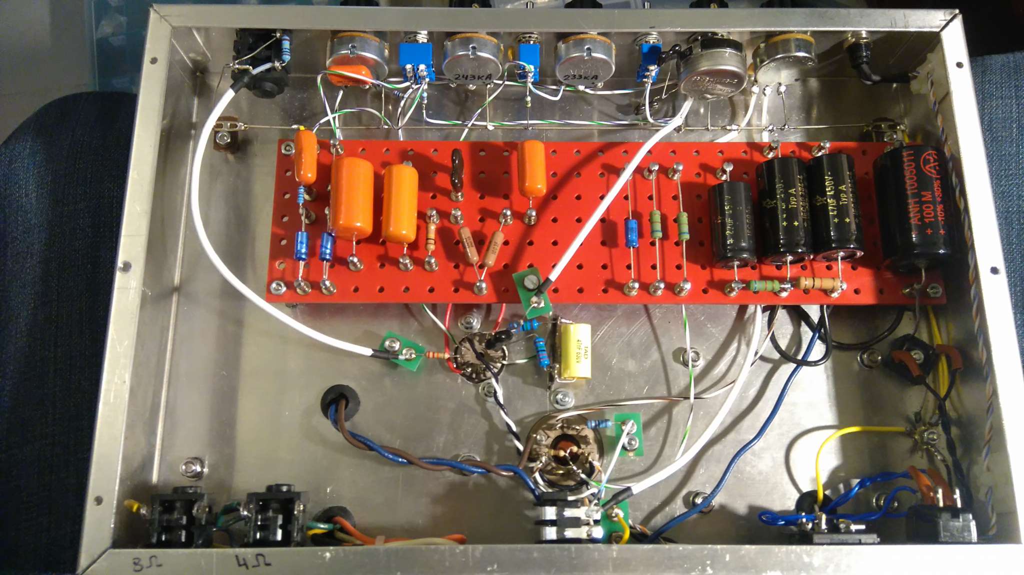 Пробывал менять лампы на преде и на пощнике - та же проблема, так же обстукал деревянной палочкой каждый контакт, припой , компонент, потенциометры без шуршания.Всё новое , всё качественное, пайка чистая, кабеля новые, короче всё новое.