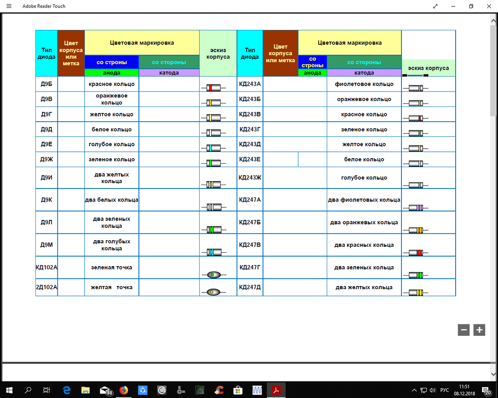 ... и добавил:Цветовые кольца со стороны анода, значит все же германий, и падение напряжения говорит о том же. Вот только какой серии?
