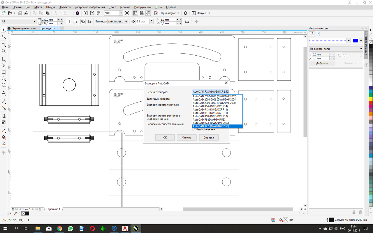 пробовал corel в DWG но autocad выдает что Файл не корректный...при выводе может параметры не те ставил...dxf тоже есть в списке