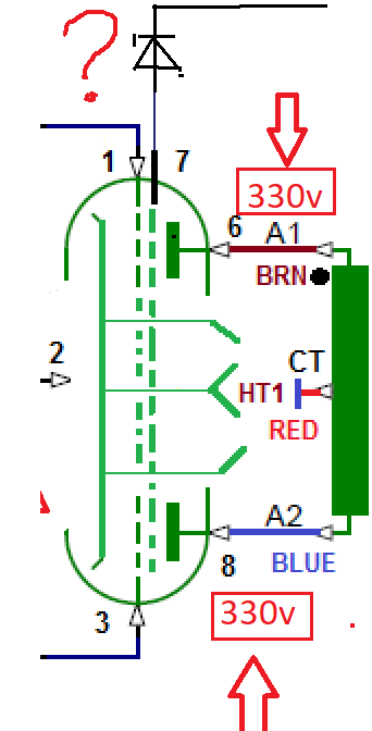 FINikk, Так подсчитай. Проблем никаких. Максимальная мощность двух анодов 12 ватт. 65% получится 7,8 ватт. При 330В на анодах получаем 13 мА.