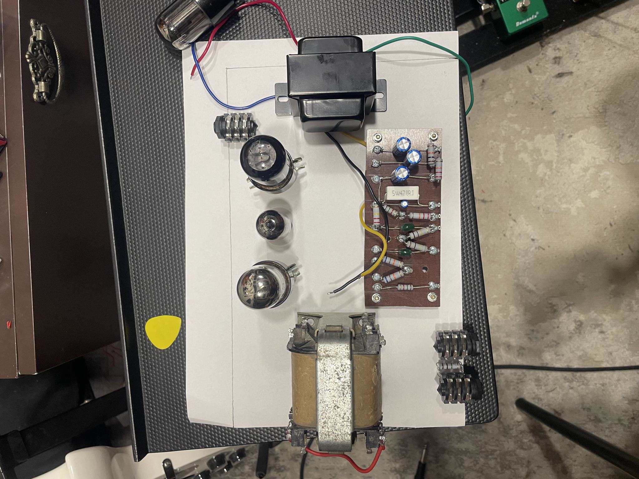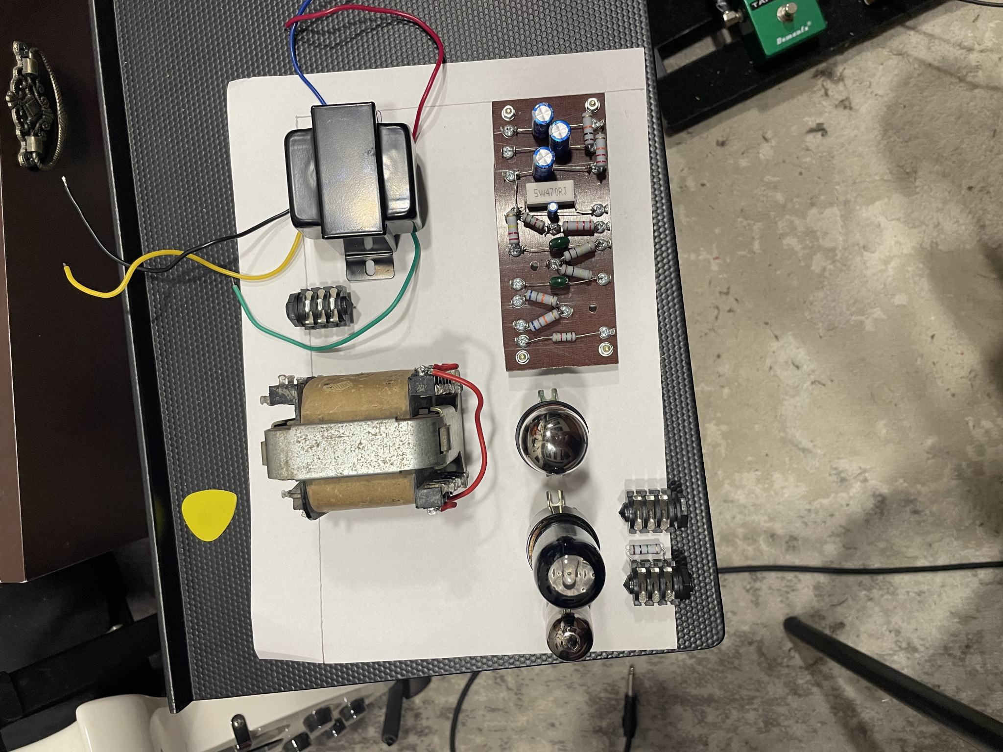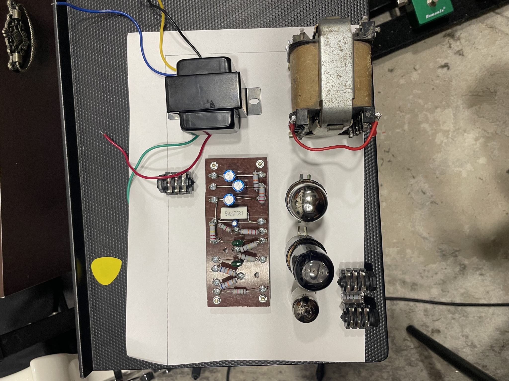 Kurenkou, Включите силовой трансформатор к сети и нагрузите его анодную обмотку двумя-тремя лампами на 220 вольт по 20-40 ватт, соединёнными последовательно. Рядом поставьте выходной трансформатор, к вторичке которого подключен любой динамик или наушники. Так можно найти взаимное расположение трансформаторов, чтобы силовой не наводил на выходной переменное магнитное поле (чтобы не было слышно гула). Учтите, что шасси, изготовленное из магнитной стали, может проводить в некоторых пределах магнитное поле.