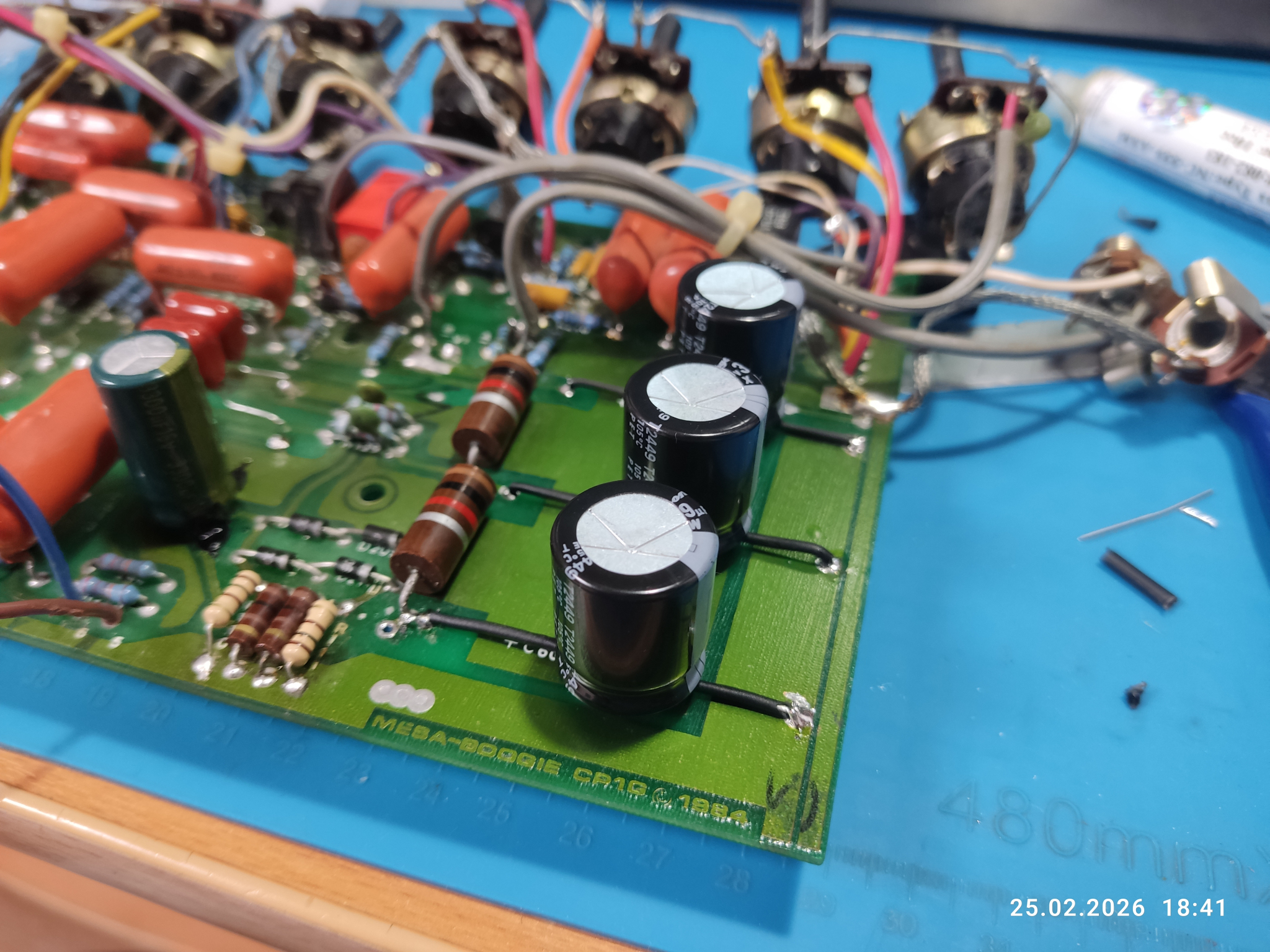 Попутно внедрён подстроечник в для регулирования смещения, заменены электролиты первого фильтра питания, в цепи накала, ещё один (остальные почему-то проигнорировал, включая кондёры в цепях тока смещения и и последующие фильтры анодки.