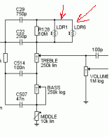 Синенькие конденсоторы если потрясти гремят как погремушки, электролит засох в комья. Кондёры в цепи смещения тоже менять. А вот c переключателем возник вопрос к оптопарам. В общем выпаял я эту VLT5C1, как стоматолог какой-нибудь, высверлил светодиод, чуть не угробив его. А он рабочий оказался. Если на фоторезистор посветить чем-ярким его сопротивление падает до нуля. В тандеме с родны светодиодом остаётся сопротивление около 100 Ом.