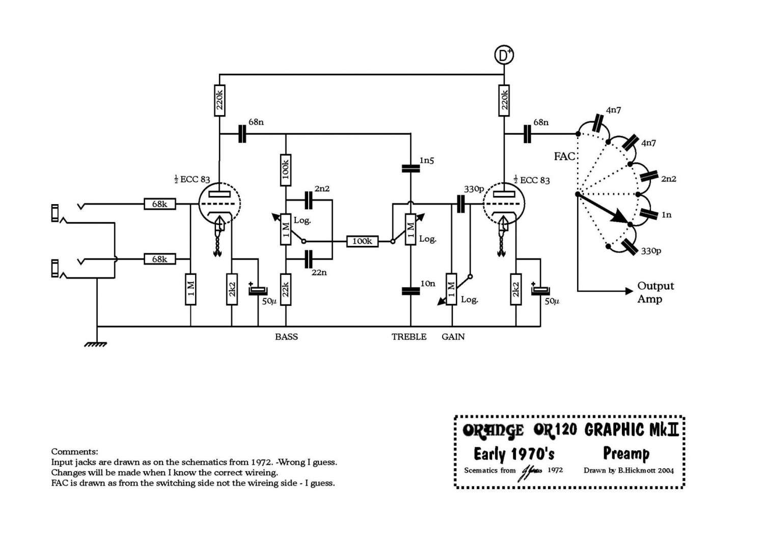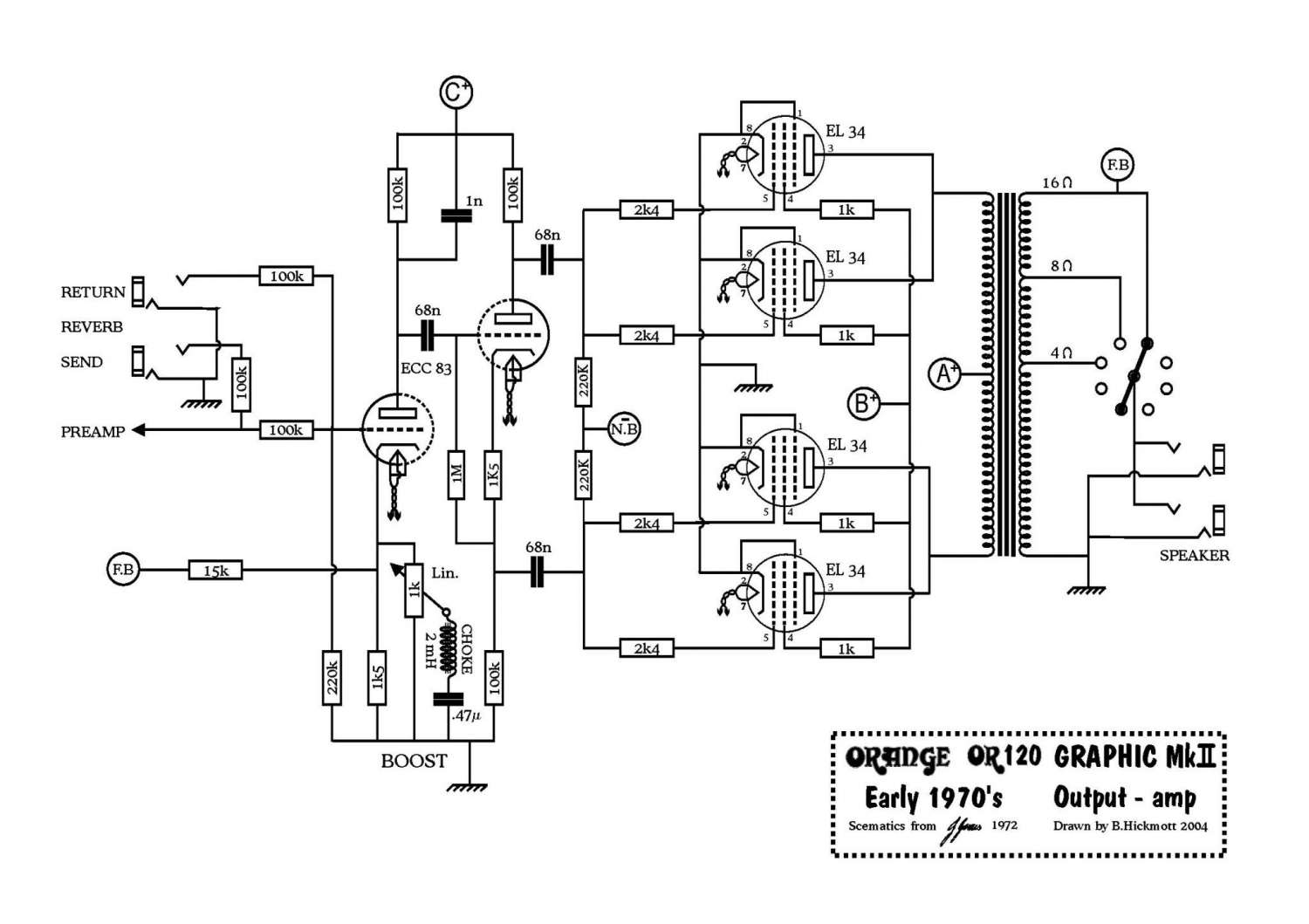 Вобщем собрал его на трансах от бига. Заимел я короче кучу проблем. Первая касается bias'a. На схеме оранджа на смещение идет обмотка 100 вольт, в биговских трансах обмотка 36 вольт и без средней точки. Вроде разрулил этот вопрос поставив диодный мост, поднял напряжение до 56 вольт, должно хватить. На аноде 450 вольт. Все было вроде норм, но в один момент одна их выходных ламп начала стреляться внутри искрами... Не пойму че им нужно... Лампы вообще старые - может уже пришло их время?