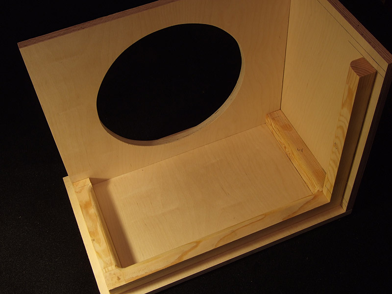Рискну навлечь на себя гнев из-за "выдумывания велосипедов" во внутренней конструкции каба. Поскольку хотелось толстенький фронтальный бортик, то сам собой между бортиком и планками получился "паз" под баффл: