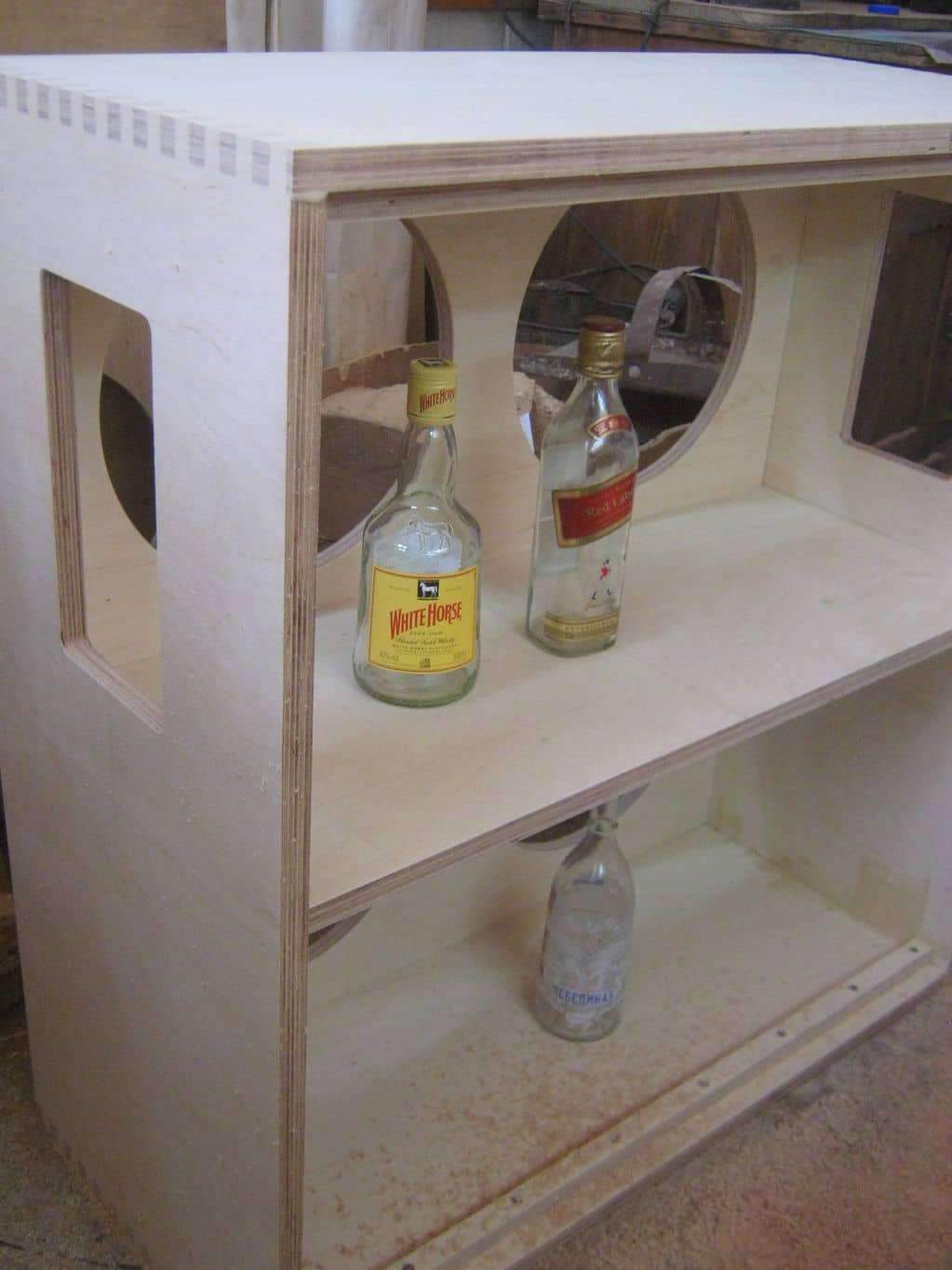 Появился фанерный короб 80×80×35 от незаконченного 4×12 каба, панель для динамиков отсутствует. Думаю сотворить из него 2х12 ( не меняя габариты) , сугубо для домашней громкости. Опыта в создании гитарных кабов таких размеров не имею, не знаю как поступить лучше: