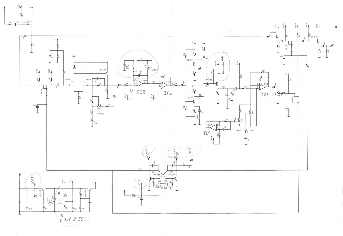 Теперь надо понять какой фон дает Ваша гитара, с проверенным дистом и отсюда понимать какой фон можно вообще ожидать от самодельной примочки.