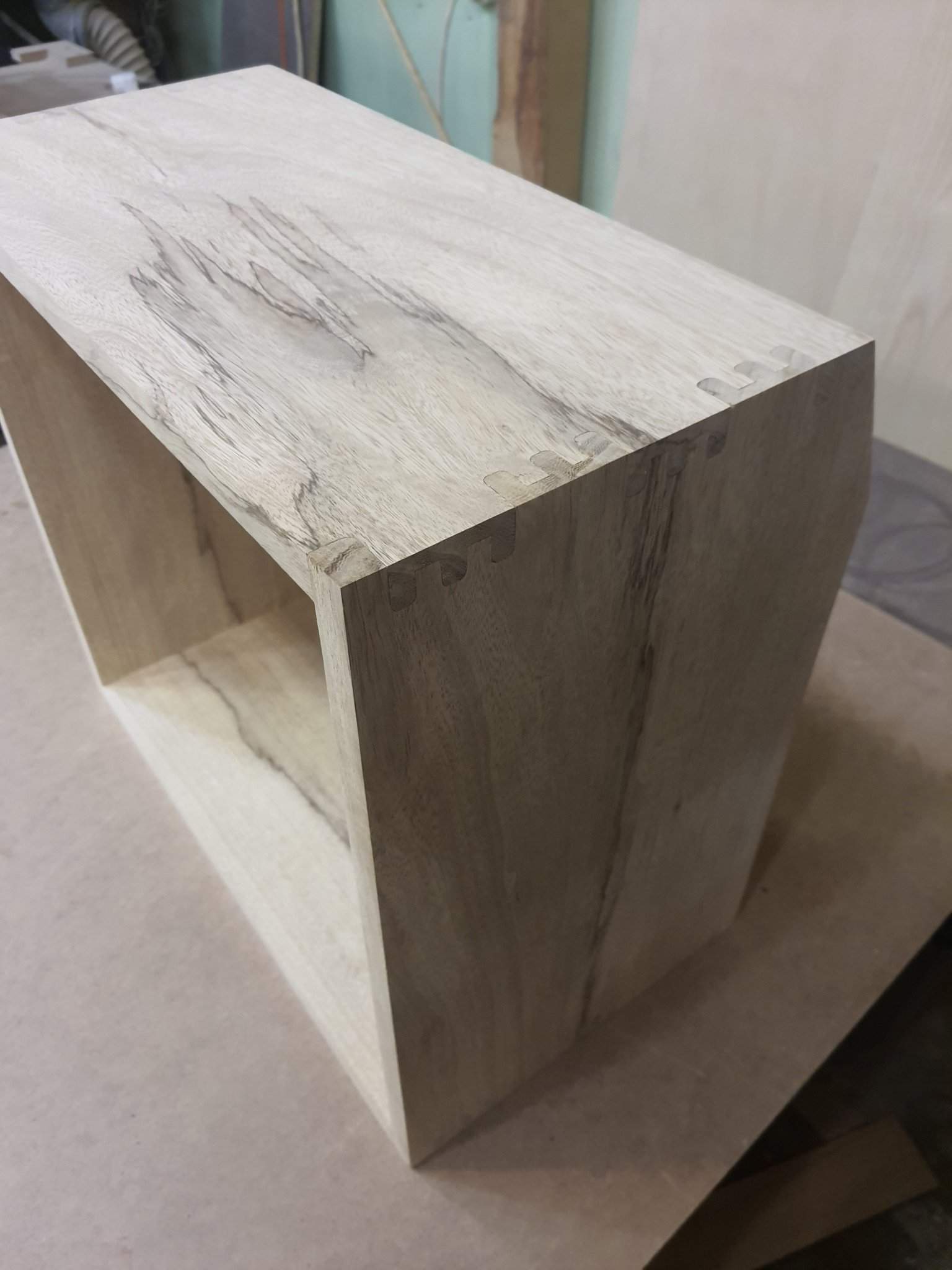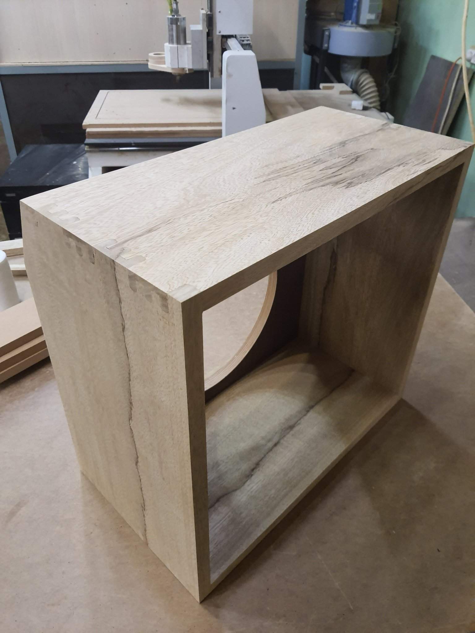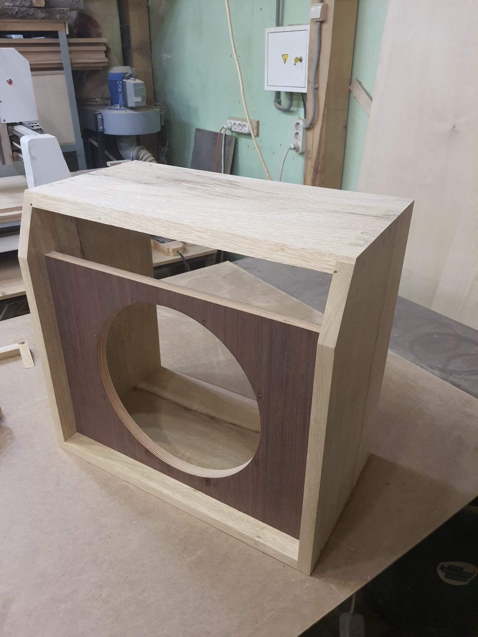 Время открытой выдержки у него, кстати, тоже неплохое, лучше наверное только у Titebond III, или при добавлении каких-нибудь присадок. Т.к. сейчас отопление включено, в помещении сухо, все-равно добалял немного, совсем малость, воды, клей сам по себе очень густой. Ну и при обработку \клеем всех шипов (8 сторон) и пазов под баффл и сам баффл, все-равно у меня было минут 15. Плюс надо все подогнать, подбить, стянуть. Здесь медлить нельзя.