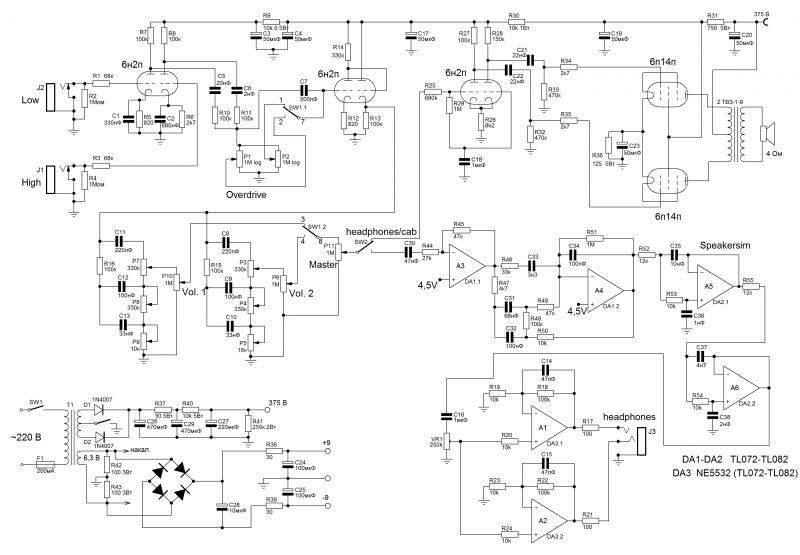 Подскажите, анодной напряжение должно быть 250В? А на накал лампы 6.3В?