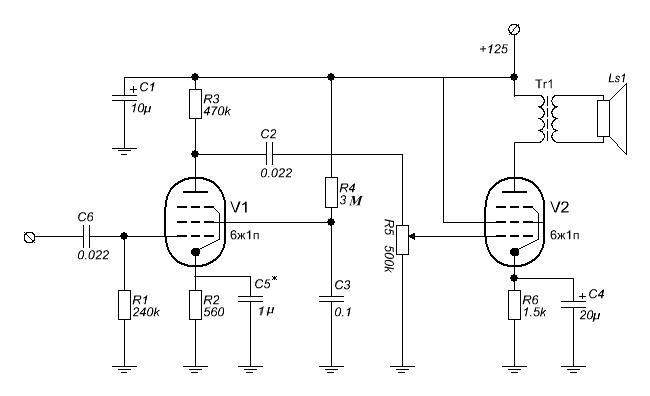 Дома кучка таких ламп, а применения я им не нашёл ещё, вот и решил попробовать сваять усилитель. Готовых схем я не нашёл, хотя такие же люди были которые хотели потратить 6ж1п.