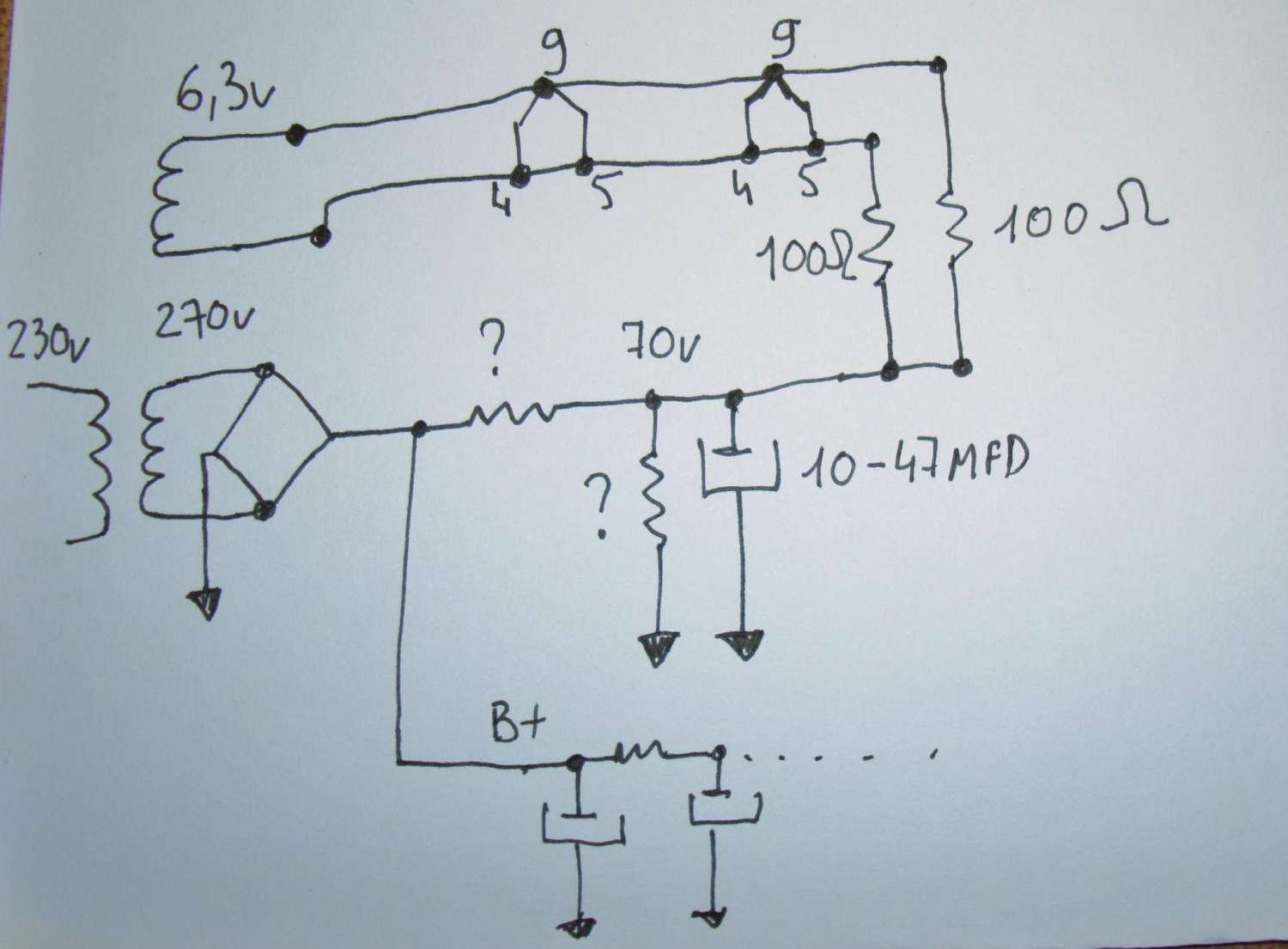 runing, ну напряжение стоит поднять, конечно, вольт до 320 примерно, на том аноде поднимется до 130. Для первого каскада достаточно. Однако, сильно менять общую схемотехнику даже после это вряд ли автору придётся для достижения интересного ему звука.