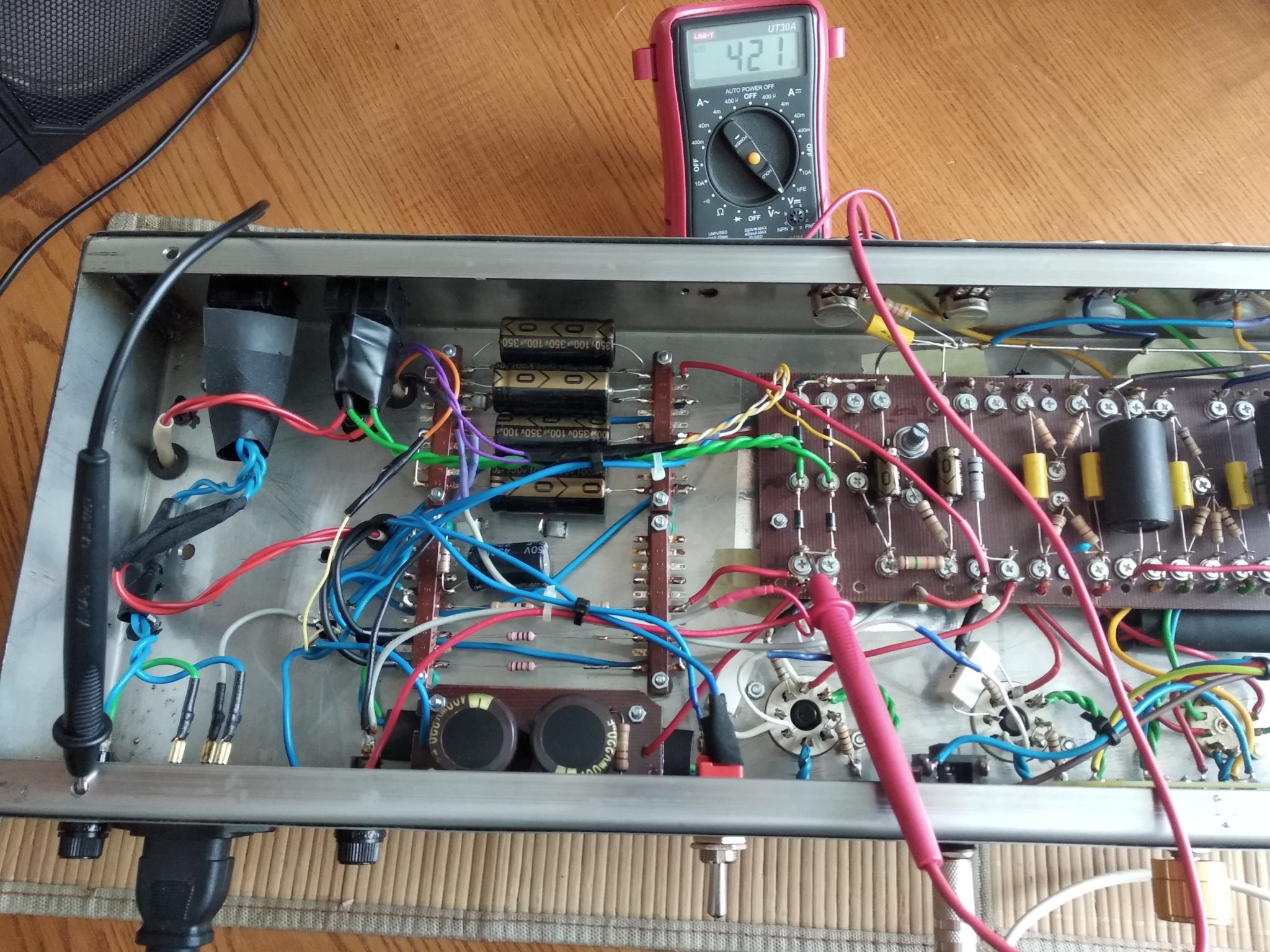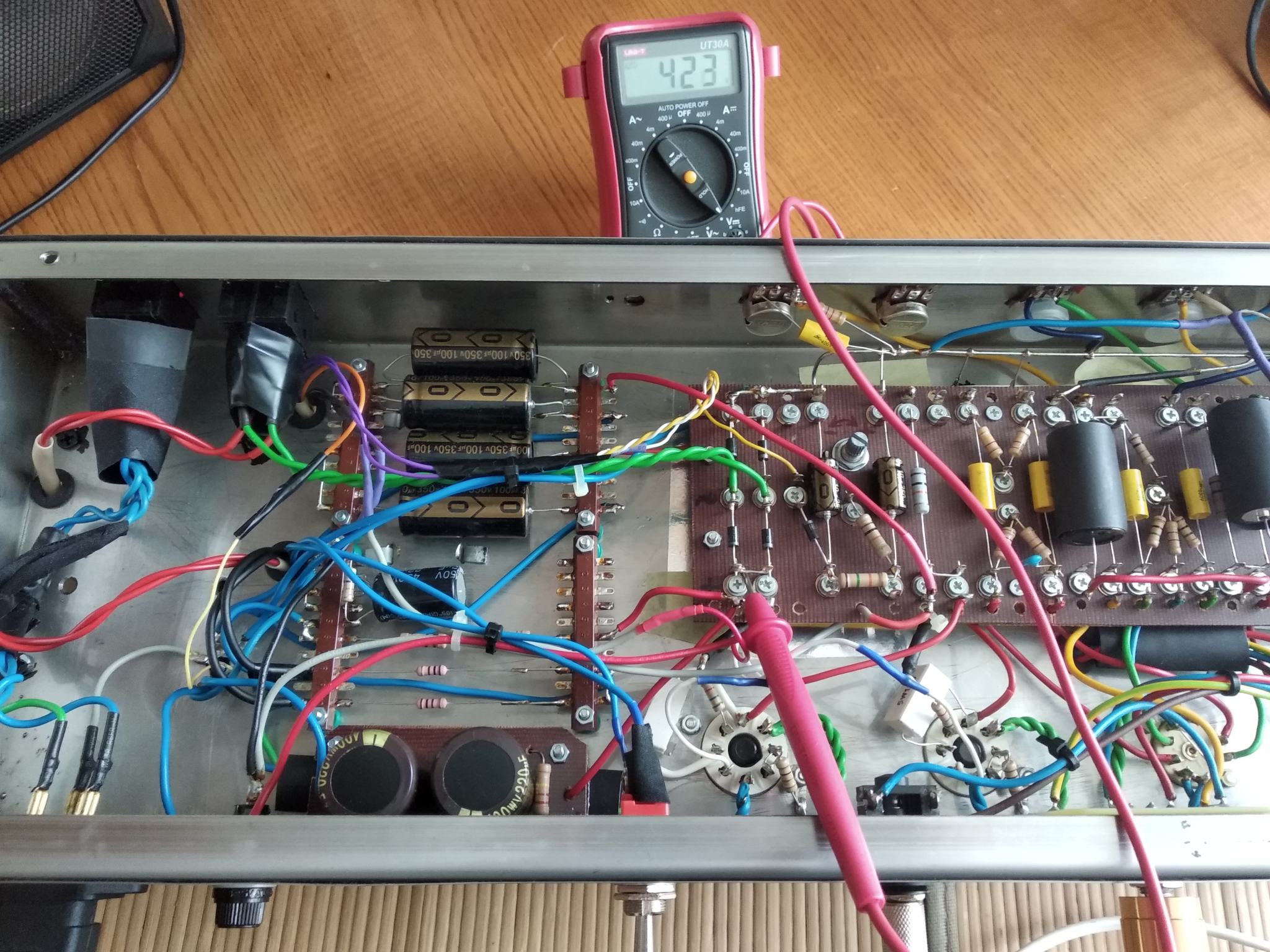 Возвращаюсь к своей 800 -ке. Пока на лампах 6П3С, и даже на них куда приятнее играть чем в EL84... Попробовал для сравнения поиграть на анодке 360 вольт, и на 420 вольт. Ощутил уже хорошо разницу. Конечно же на 420 вольт звук намного круче, и громче, и под пальцами ощущается больше мощи в гитаре , перегруз более сочный и хрустящий , такой как мне нравится.. Больше отдача и напор , звук более упругий если можно так сказать . Всего лишь с одной грелкой ТС-9 можно получить уже почти хайгейн. Только смущает что на вторых сетках G2 , напруга почти такая же как на анодах , до 420 вольт при анодном 425 в . Для обычных 6п3с это вроде бы многовато , не ? Или может купить лампы 6П3С-Е ?