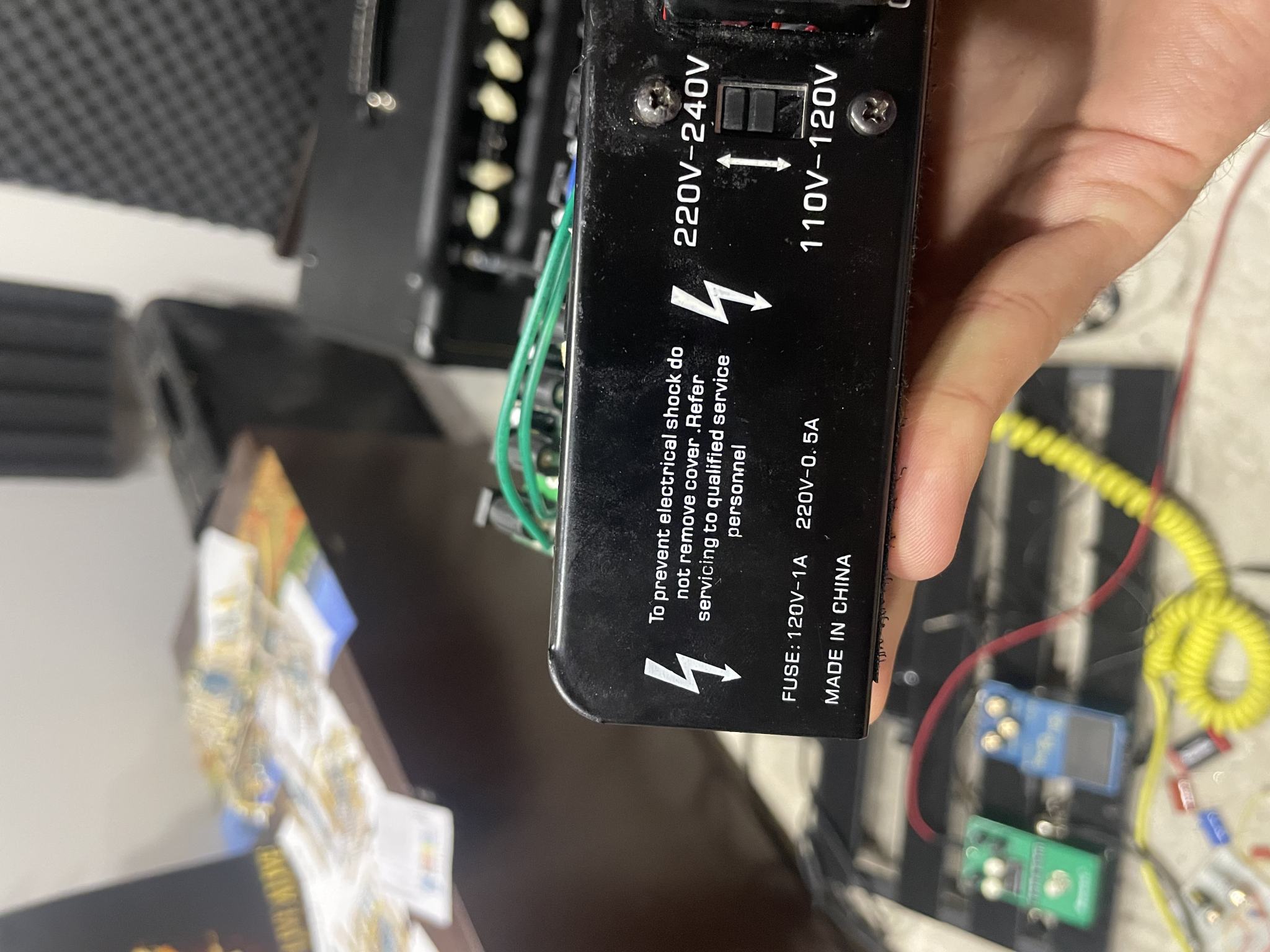 Привет народ! В общем случилась неприятность, включил бп для примочек в режиме 120 вольт, не спрашивайте как🤣, просто как факт, по всей видимости сгорел предохранитель, на корпусе пишет что вроде как их два, и вот вопрос, по внешнему виду не могу определить где они, есть предположение что в обведенном месте на фото, кто подскажет? Таких предохранителей просто не видал ранее
