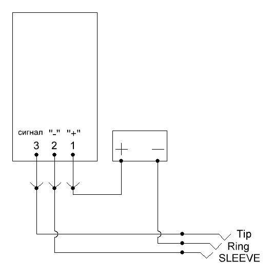 3. «-» Датчика соединить с земляным контактом джека (Sleeve);