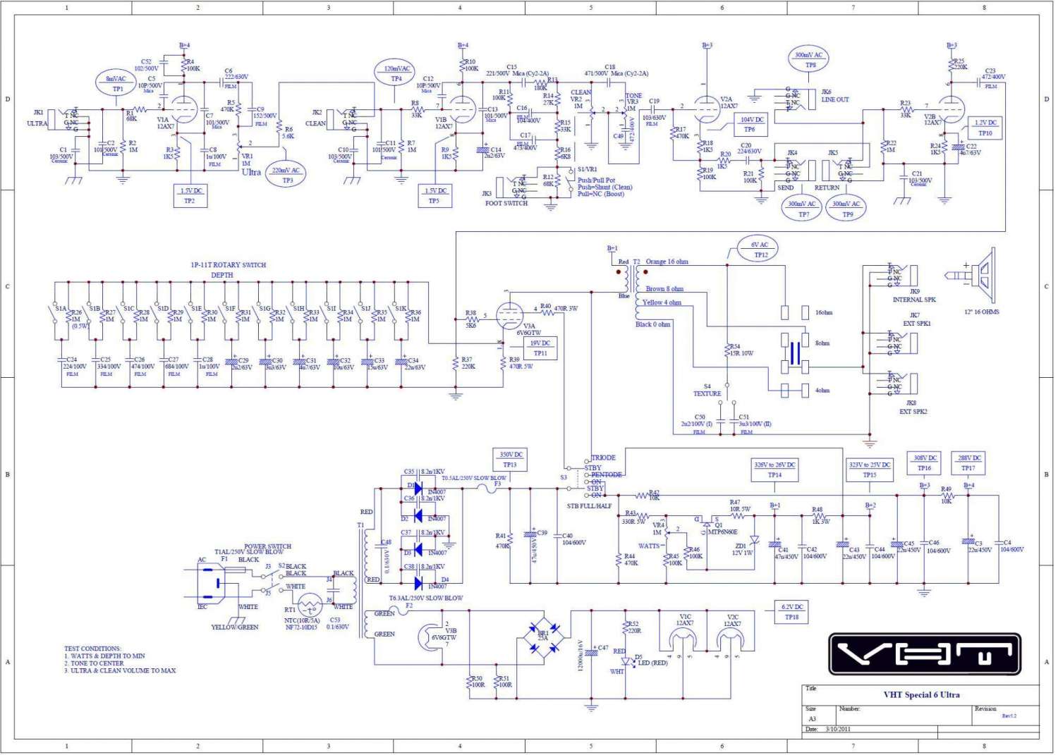 Имею в наличии VHT Special 6 Ultra. Кто с ним знаком, думаю, могут согласится с тем, что у данного усилителя не все лады с перегрузом, да и чистый канал, надо сказать, не так мурлычет как подобает ламповым... Ну кто слушал, тот знает. Особенно перегруз. Виной тому излишне загаженная схема усилителя, как отмечают некоторые знатоки этого дела... ("этого" дела брать с собой по два литра