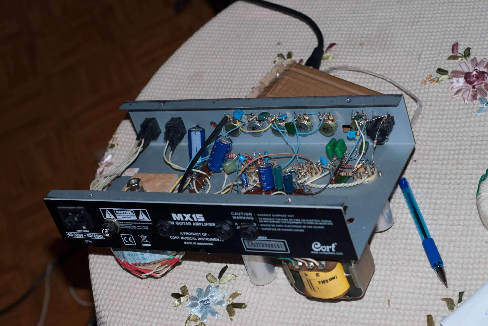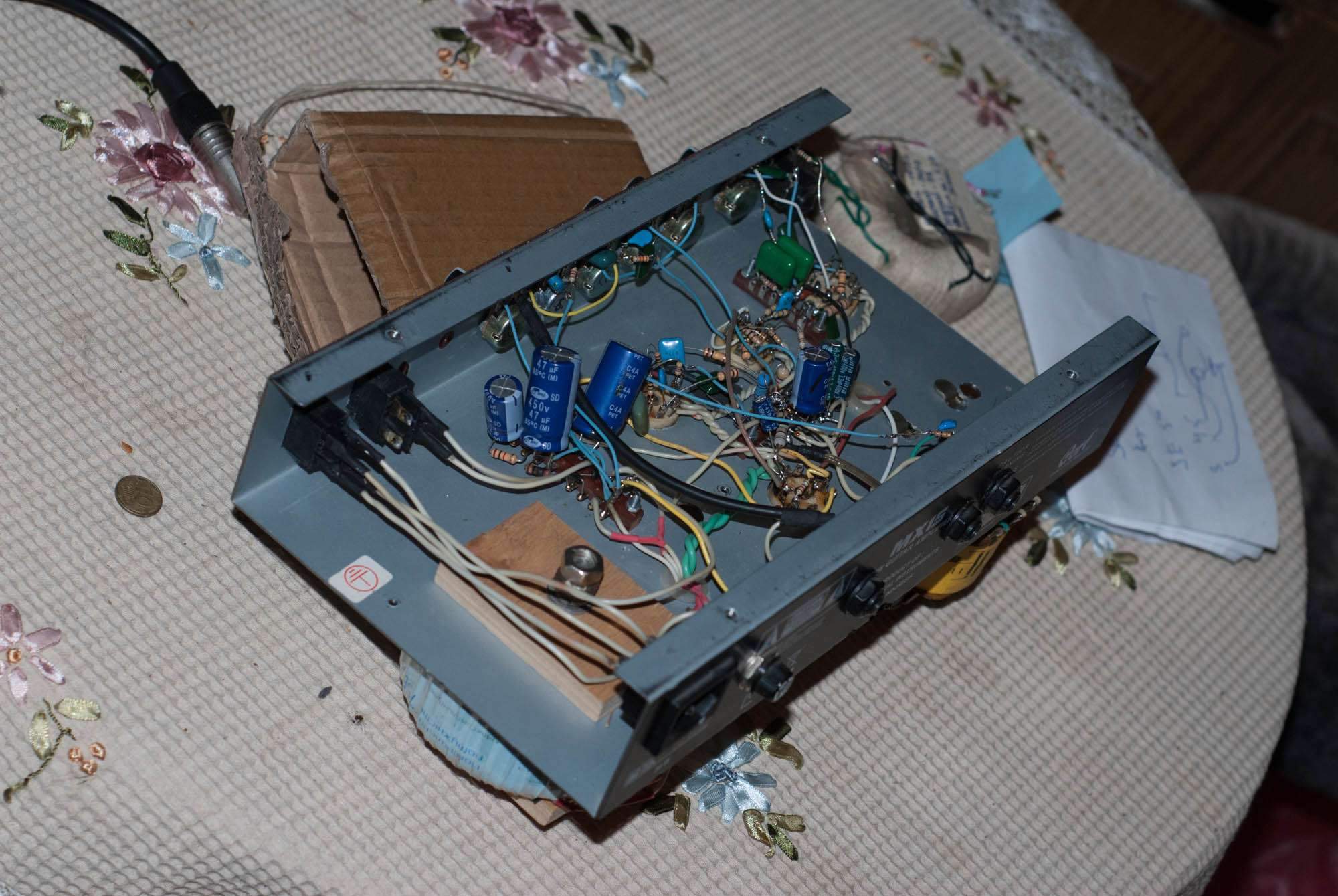 чтобы не ругали причиной разборки было пропадание звука и хрип, как оказалось почему-то отпаялся конденсатор 47 мкф 450 вольт (видимо при перевозке)