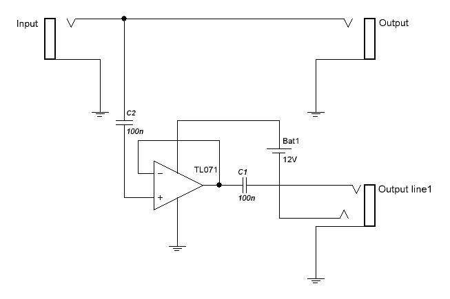 Нужен разветвитель, у которого один вход (сигнал с звукоснимателя гитары) и два выхода, один для ампа или педали, второй для линии. Девайс нужен для студии, там где необходимо писать чистый звук гитары одновременно с снятым миками, чтобы потом его можно было при необходимости пустить через амп и переписать. Надеюсь понятно объяснил. Ну и возможно ли это сделать без повторителей, дабы не заморачиваться с батарейками.