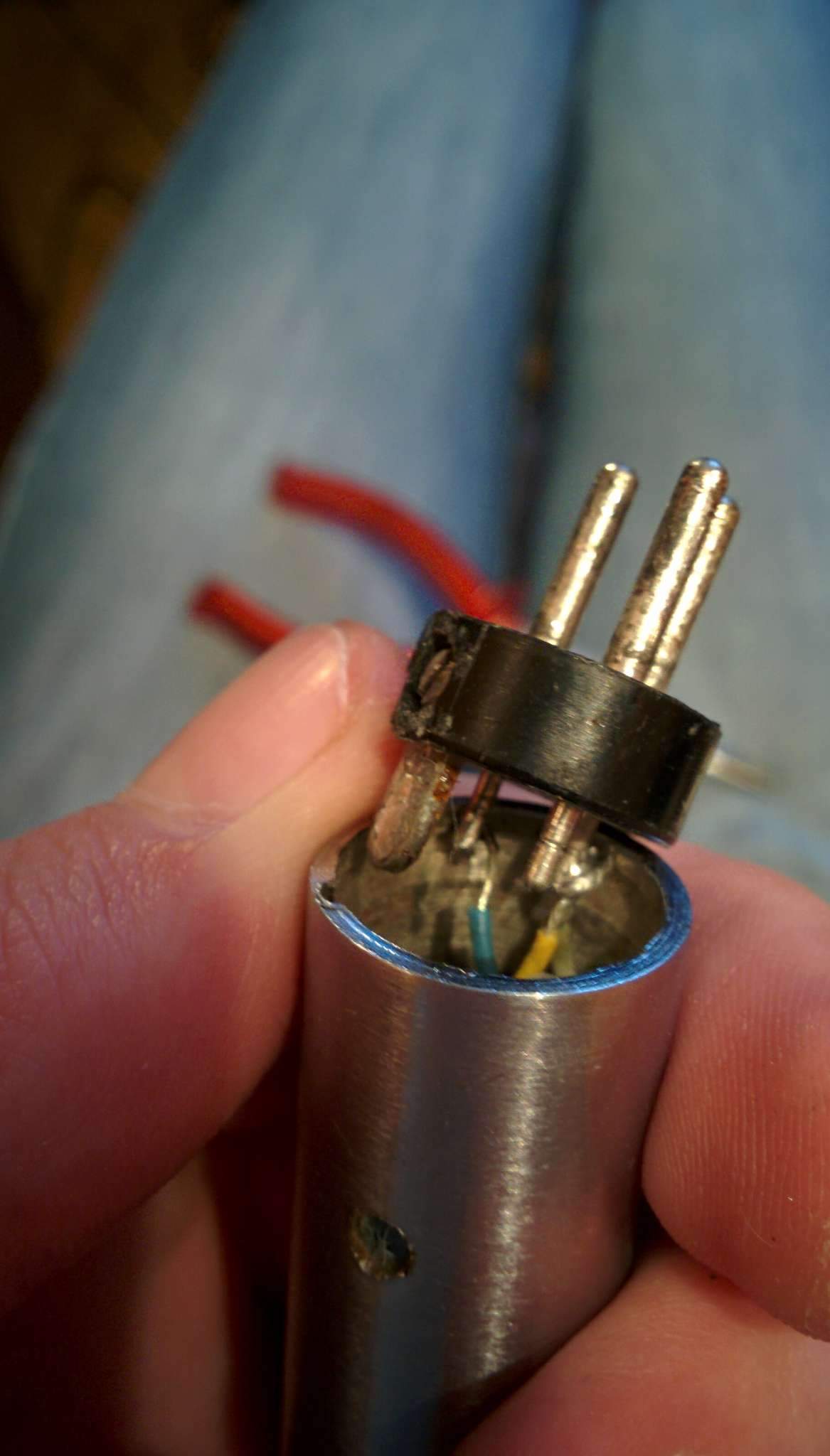 Здравствуйте. Не знал куда написвт, так что напишу сюда. Сегодня привезли микрофон Turner Balladier 2266. Он прекрсно работает. Но не работает свитч вкл/выкл. В положение 'выкл' чуть увеличивается выход. Вобщем я это дело конечно же разобрал. И ситуация вогнала меня в ступор. Почему к третьему пину(он же минус) идёт два провода? Заранее извените за качество фото.