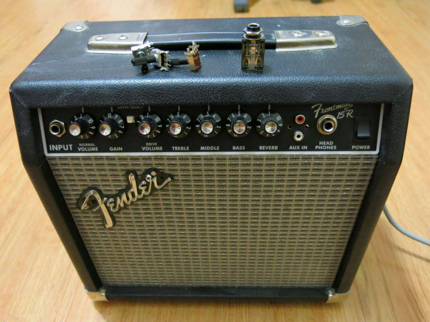 Увидел как-то в интернетах объявление о продаже комбика FENDER Frontman 15R по весьма демократичной цене 2 тыс. рублёв с угрозой, что если не продастся до какого-то там числа, то цена поднимется аж до 3 тыс. Мне как раз нужен был такой аппарат. Позвонил хозяину, он сказал, что не продал ещё и что можно прийти посмотреть. Ну я собрался и пришёл к нему в гости. Оказалось, что послушать его не на чем, т.к. гитару он якобы продал. О причинах распродажи он сказал, что ничего не получилось и что решил позаниматься на классике (классика в наличии действительно была). Ну я сказал, что возьму, но если чё не так, то верну и если придётся, то даже насильственно. Принёс сиё чудо я домой, подключил гитару и понял, что электрогитару бывший хозяин скорее всего куда-то спрятал на время моего визита. При попытке что-либо отрегулировать в звуке из динамика доносился пердёж, говорящий о том, что все резюки умерли. Ну я подумал фигня – вылечу. И отложил это дело на несколько дней. Потом, когда я разобрал комбик, то понял, что достать такие резюки скорее всего будет сложновато. А нести усилок обратно поздновато. Кроме того, было видно, что какой-то чудак уже поковырялся там своим паяльником. Он пропаял все ножки у резисторов видимо думая, что это поможет. Я выпаял один потенциометр, аккуратно переписал названия всех остальных и пошёл в «Радиодетали». И конечно же таких деталей там не оказалось. Тут я подумал, что стоит попробовать взять обычные резисторы и соединить их с платой посредством проводков. В маркировке резисторов помимо сопротивления присутствовали непонятные буквы А, В и С. Что они означают продавцы объяснить мне не смогли, а на имеющихся в наличии резисторах были только буквы «В». Потом оказалось, что эти буквы означают характеристику изменения сопротивления в зависимости от угла поворота ручки. Кроме того, в магазине присутствовали не все номиналы сопротивления. Пришлось брать что есть. Резисторы были безродные по цене то ли 7, толи 8 рублей за штуку. Пришёл я домой, перепаял несколько штук, проверил и понял, что я на верном пути. Правда проводки, которые я использовал изначально были достаточно жёсткими и выламывали дорожки на плате. Потом я раздобыл проводки потоньше. В металлическом корпусе усилителя на лицевой панели пришлось рассверливать отверстия под новые резисторы и сверлить отверстия под фиксаторы (см.фото). Тем временем я ломал голову, где бы взять резистор с номиналом 250Ком? И вот на сайте у товарища Ерасова я его обнаружил. Кроме того я там обнаружил и резисторы с другим номиналом, но нужными мне характеристиками А или С. Правда некоторые из них были лишь в стерео варианте, но цена не существенно отличалась. Короче заказал я в их интернет шопе радиодеталей рублей на 500 и примерно полгода назад получил посылочку. Всё это благополучно провалялось до Нового года и вот вчера я решил заняться комбиком. Новые альфовские резисторы подошли лучше прежних, т.к. палочки у них короче и ручки сели на них почти до передней панели. С родными резисторами ручки кстати скребли по панели. И вот собрал я комбик, подключил свою Пацифику 412 и понял, что она превратилась в Стратокастер. Чистый звук невероятно чудесен. А вот распространённое мнение, о том, что перегруз у Фронтменов хреновенький, подтвердилось – сплошной песок. У имеющегося в наличии Ерасова Маус 15 овердрайв куд
