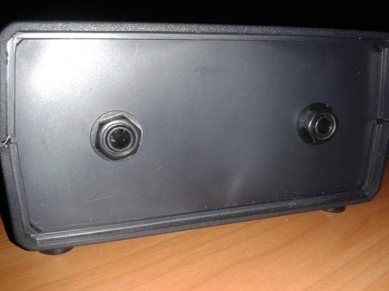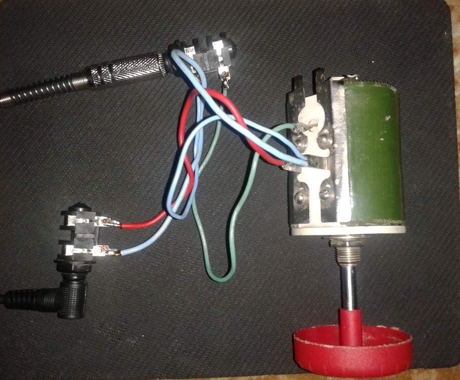 Вот еще вариант на мощном переменном резисторе ППБ-50Г 10 Ом. Идея не моя, подсмотрел где то на аналогичном форуме, но работает хорошо. Достал этот переменник и спаял это устройство. Регулировка громкости получается плавной, возможно подбирать разные уровни выходной мощности и уровня сигнала из аттенюатора. Так как сопротивления динамика частично шунтирует часть переменного сопротивления, общее сопротивление для усилителя получается около 8-9 ом. Конечно, если его выкрутить полностью, то сопротивление упадет приблизительно до 5-6 ом, а это маловато для 8-омного выхода, но думаю не опасно. Хотя кто его будет до конца выкручивать, ведь у нас цель уменьшить выходную мощу. Резистор на керамической основе, греется, но не очень. В середине отверстие, вполне, при необходимости, можно организовать обдув компьютерным кулером.