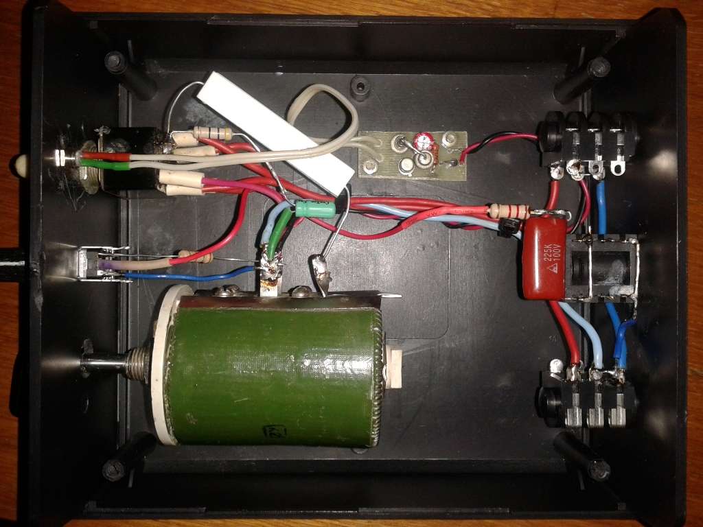 Хочу только акцентировать, что используемый мной в основе переменный мощный проволочный резистор имеет в конструкции "объемную катушку" около 70 витков толстого нихромового провода и является, в отличии от обычных резисторов, на звуковой частоте нелинейным элементом. Присутствует и сопротивление и индуктивность и междувитковая емкость...