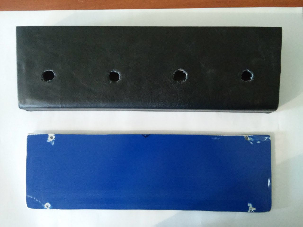 Тратиться на алюминиевые корпуса я не стал. Корпус сделал из фанеры и обшил кожей, крышку из какой-то композитной панели.