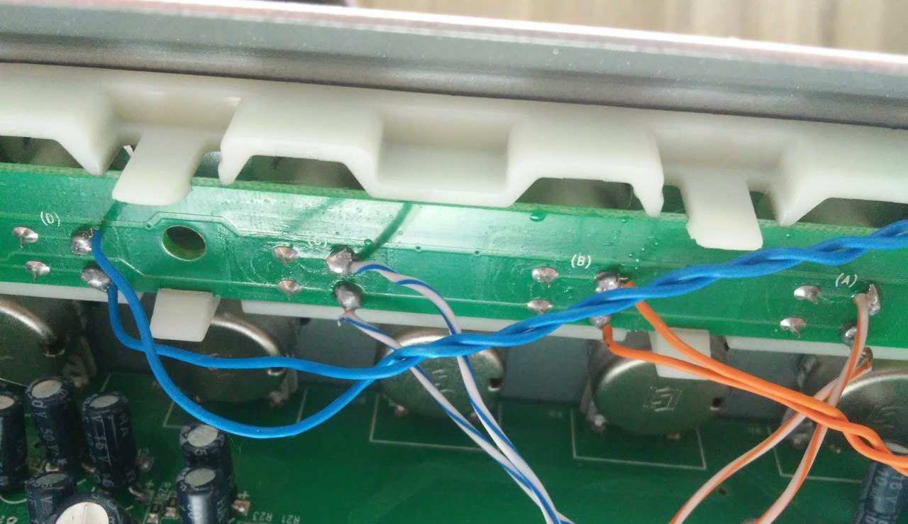 Собственно все дальше понятно. Нам нужно вывести кнопку наружу для этого припаиваем контакты так как указано на фото. Каждому каналу должна быть припаяна соответствующая кнопка.