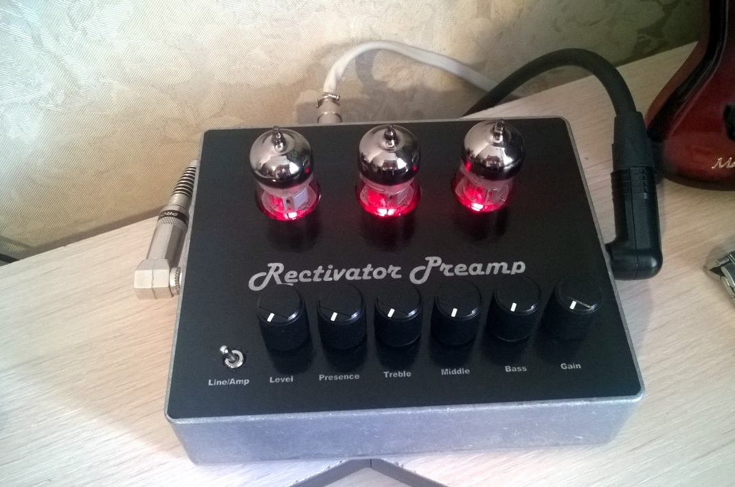 Хочу выразить огромную благодарность Алексею за подробное описание конструкции, что позволило буквально за два дня построить работающий преамп. Так уж получилось, что на гитаре я не играю, поэтому аппарат построил для друга на ДР.