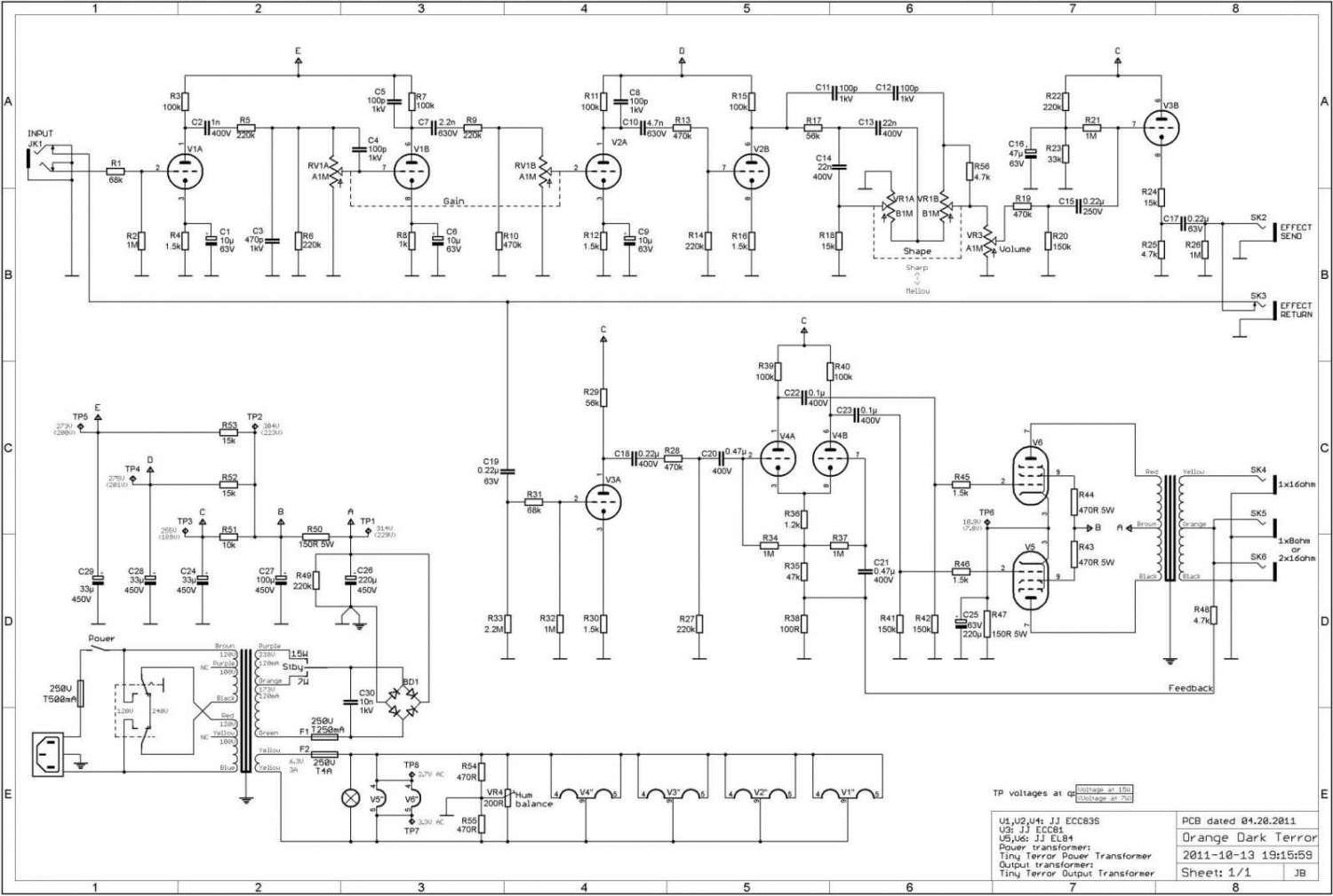 преамп – грязный канал из Рокерверба(он фактически и изображен на схеме ДаркТеррора). Дублировать фотки не буду, в интернетах все есть.