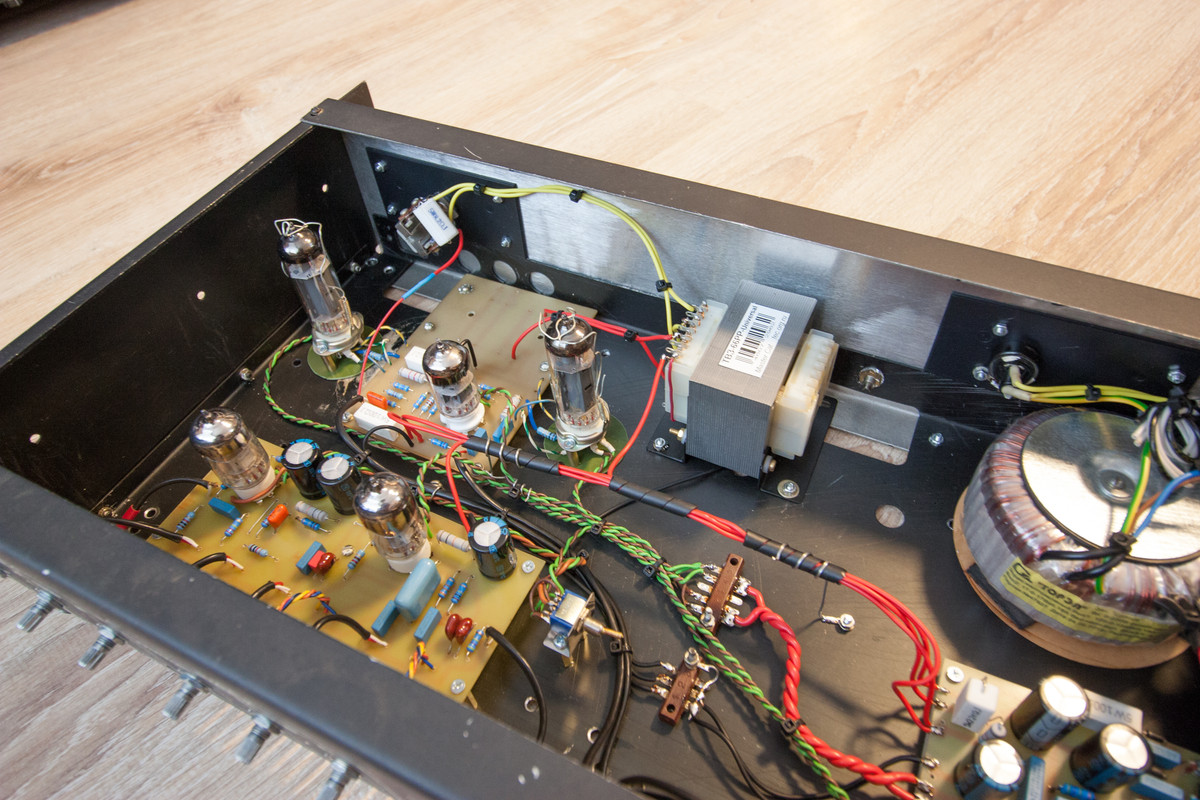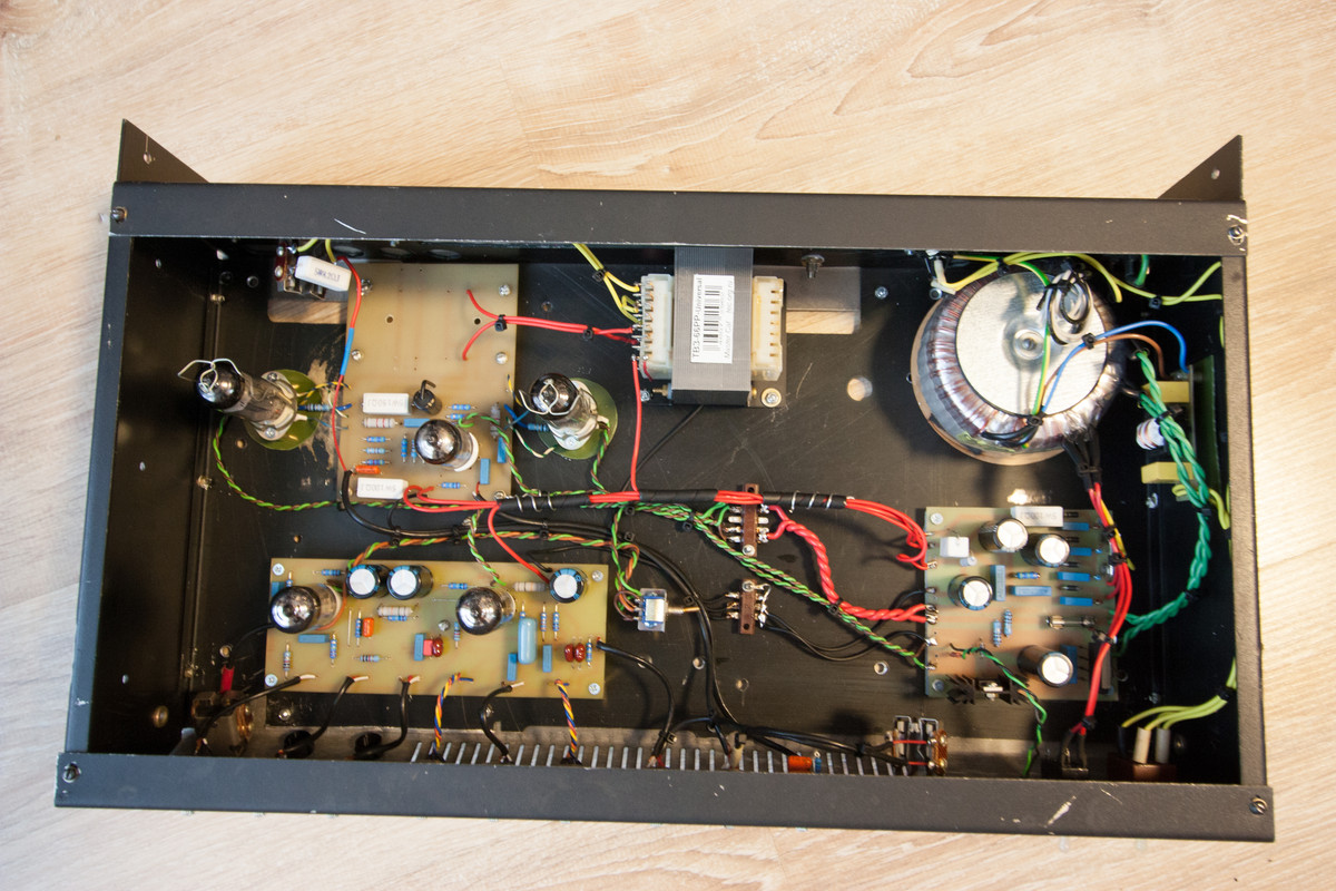 Заказчику получившийся аппарат очень зашёл. Покажу что получилось, задумка была сделать недорогую модульную конструкцию, БП отдельно, пред отдельно и мощник соответственно тоже. Вдруг один из компонентов поменять захочется. В качестве преампа Чадвик, оконечник от Marshall 18 Watt. Трансформаторы взял у Ерасова.