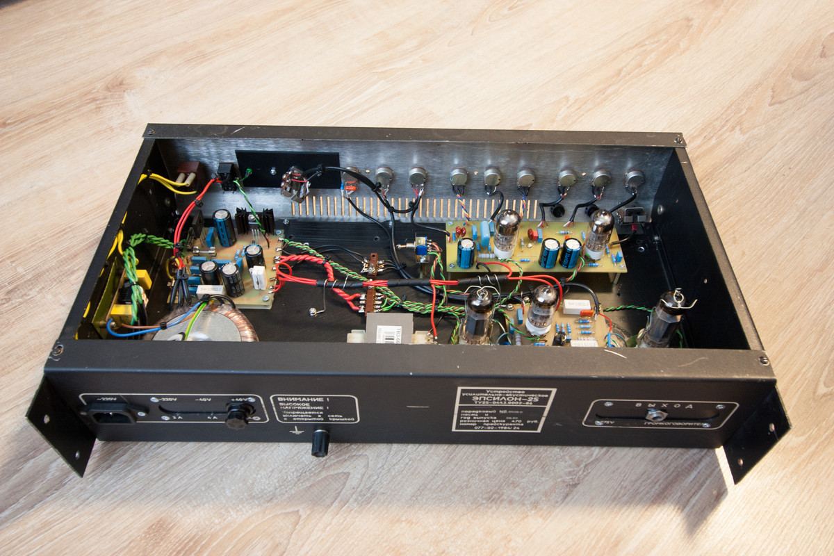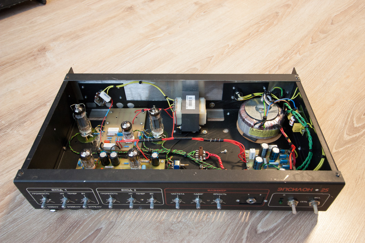 После нескольких спаянных Hi Gain преампов и усилков хотелось скрафтить Chadwick, но для кого? Сам я умею только жужжать, до блюза не дорос, в смысле исполнения. Но вот недавно всё срослось. Попал мне в руки старый Советский ещё комбик "Эпсилон 25" в нерабочем состоянии, но комплектный и с целым динамиком. И блюзмен знакомый нашёлся. И всё заверте.