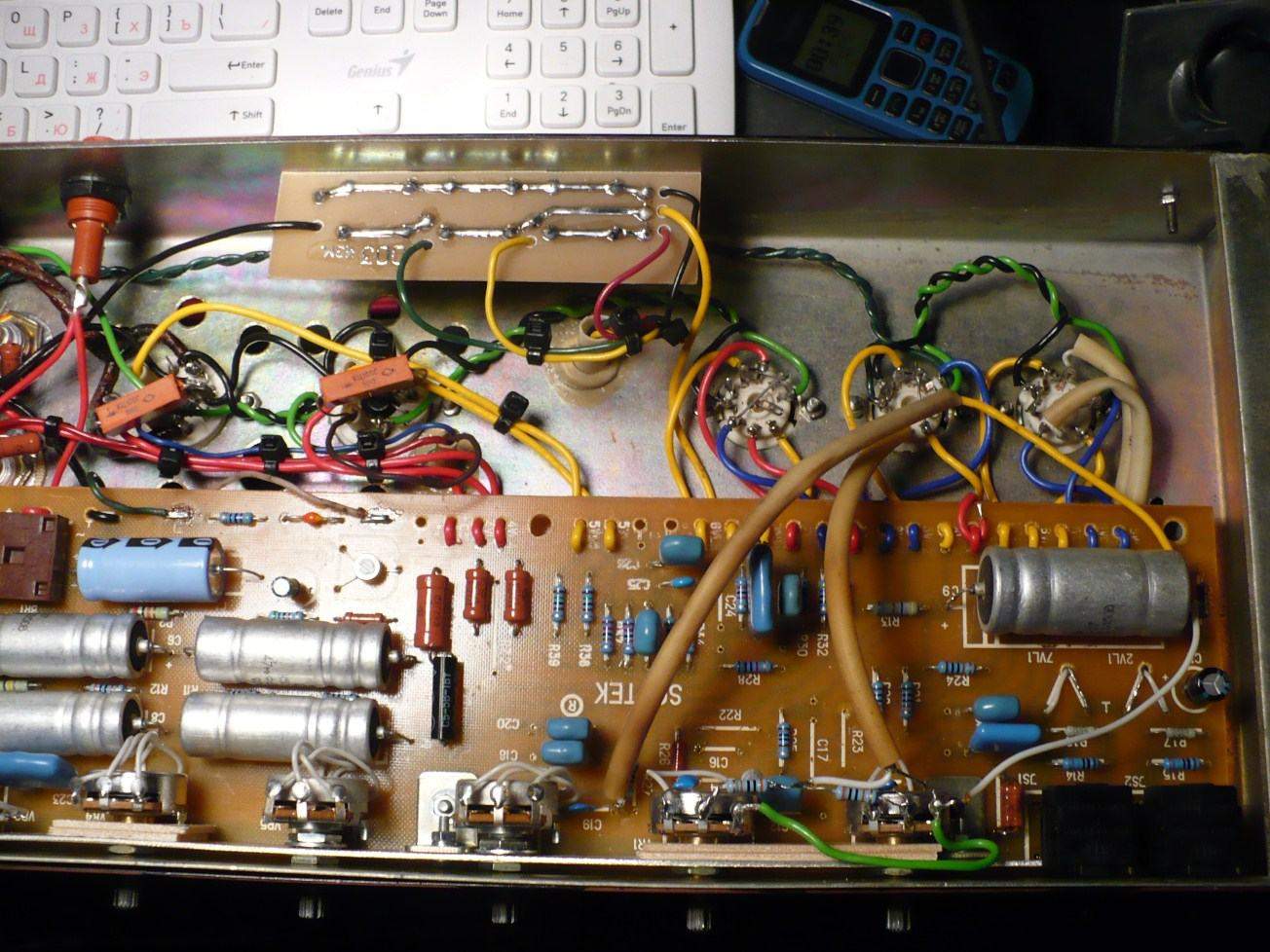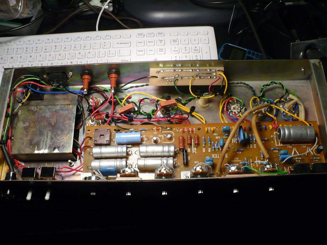 По поводу электролитов - там этажерка. Нижний сидит на шасси. Верхний изолирован.
