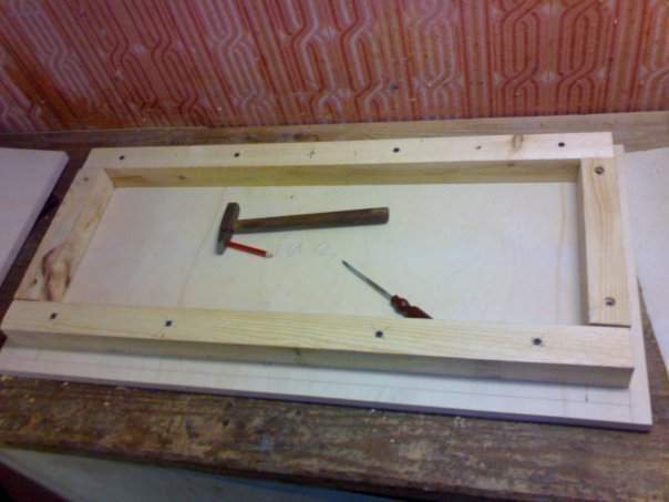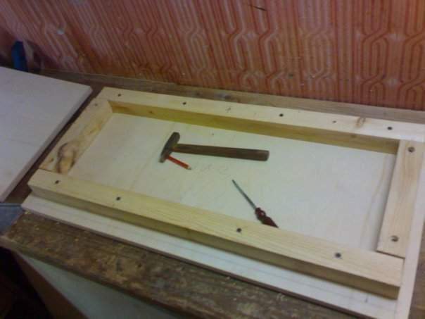 для начала все разметил, все посчитал.. (да и то несколько раз все равно ошибся). попилил брусок на нужные мне размеры и начал наживлять на саморезы. клеить буду сегодня или завтра... тупо забыл купить ПВА. да и решил сначала сделать конструкцию целиком на саморезах. а потом уже клеить навсегда)